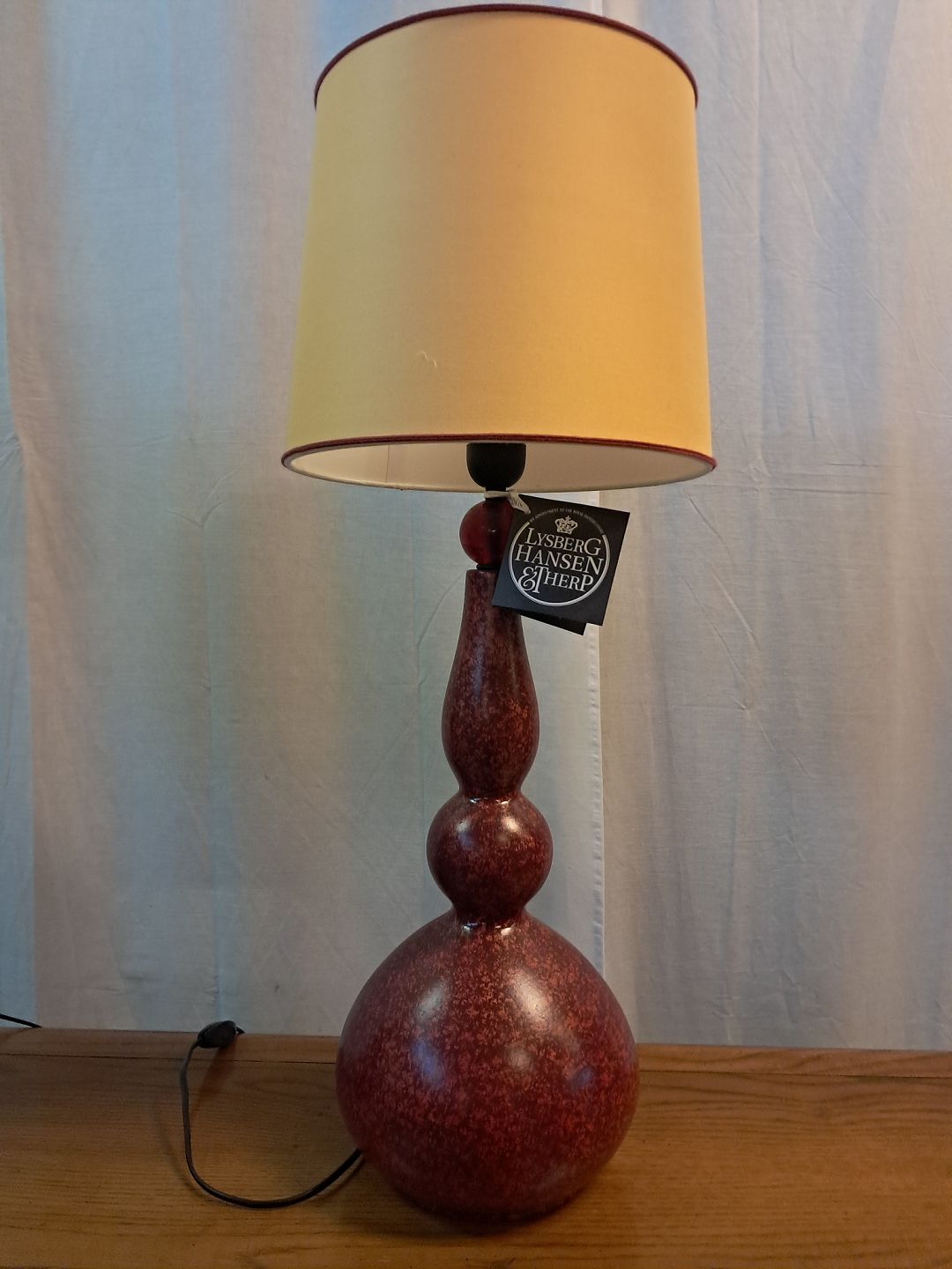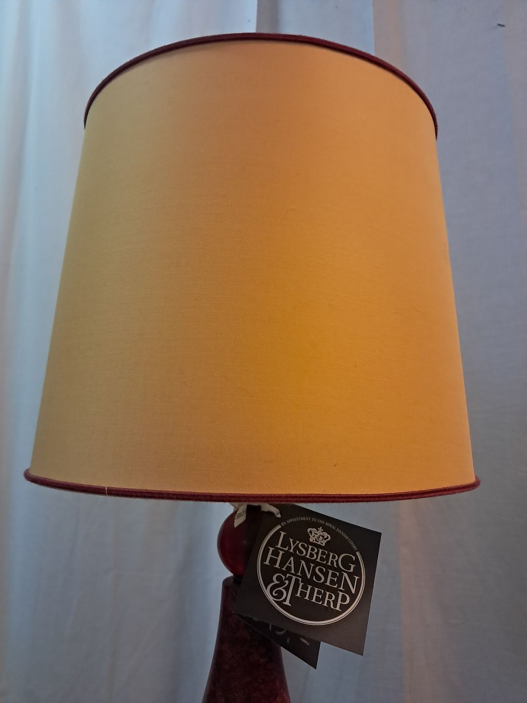 2 Lysberg Hansen og Therp bordlamper i pocelæn med skærme, fra 2000erne.