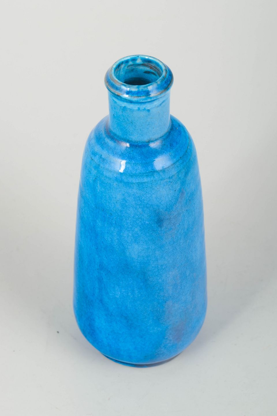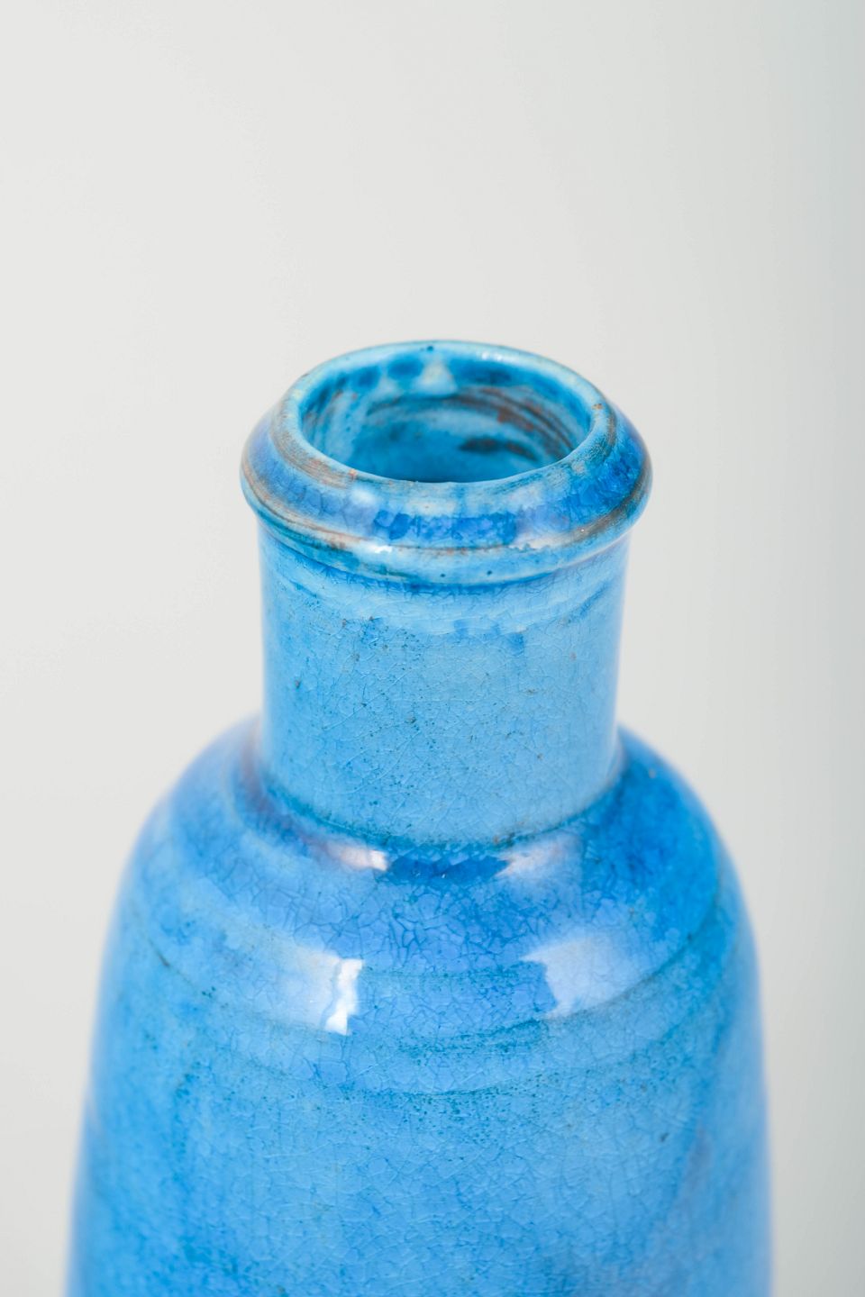 Elegant cylindrical vase in the iconic azure-blue glaze characteristic of the Kähler workshop during the 1960s. The form is gently tapered with a narrow mouth and a richly textured glaze that emphasises its hand-thrown quality.