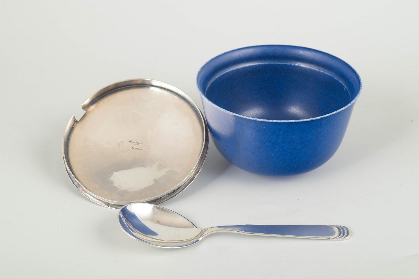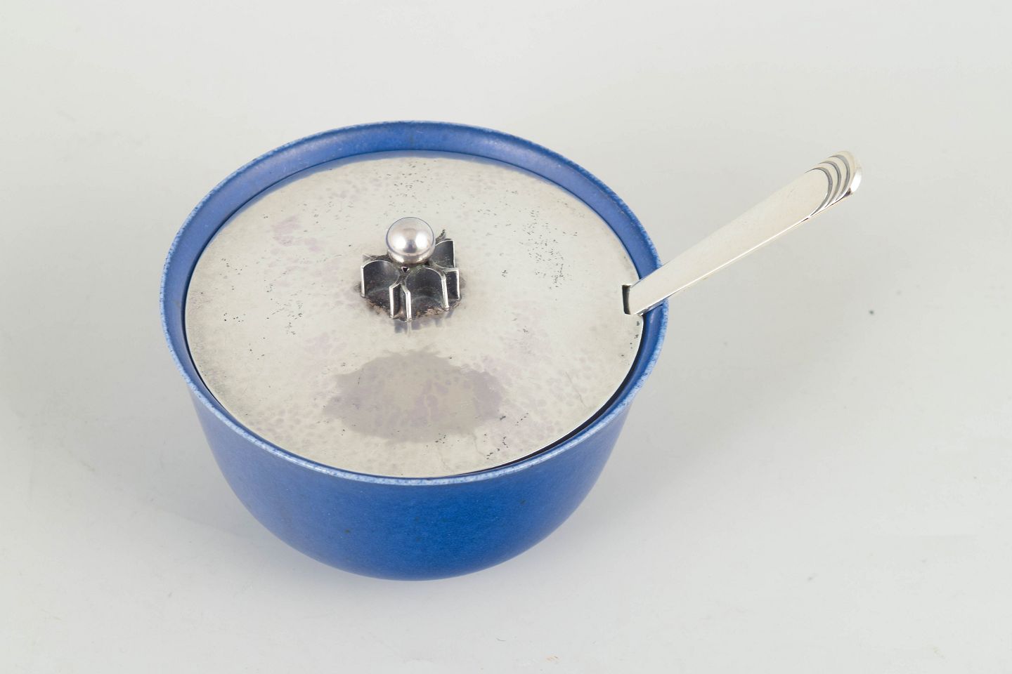 Material: Stoneware, sterling silver (lid), 830 silver (spoon).