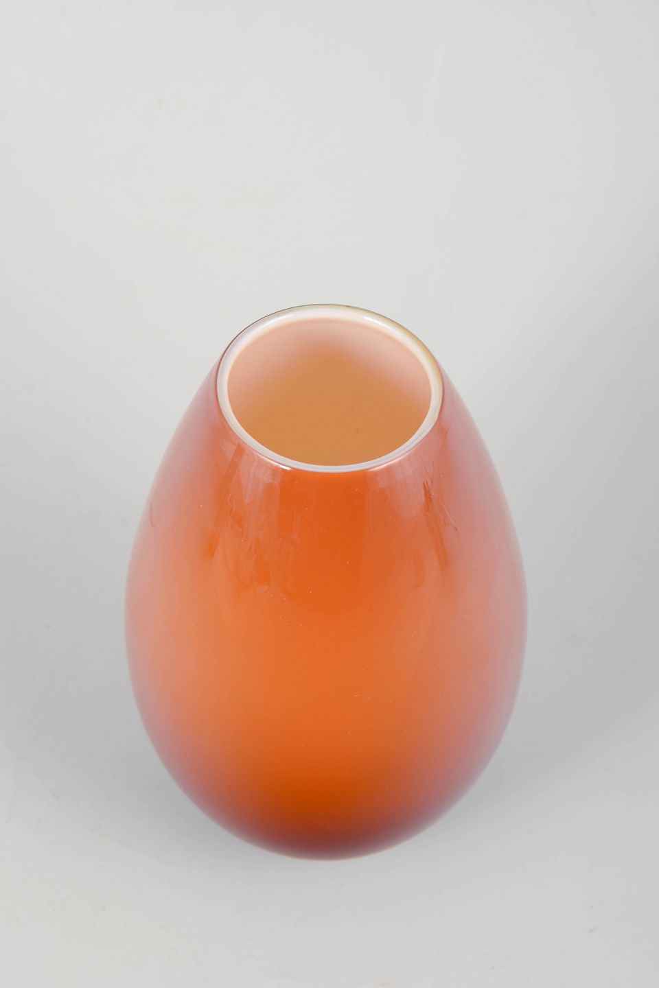 Mouth-blown vase in a warm orange tone from Peter Svarrer’s well-known “Cocoon” series for Holmegaard. The soft, oval form and gentle colour gradation give the piece a modern, sculptural presence.