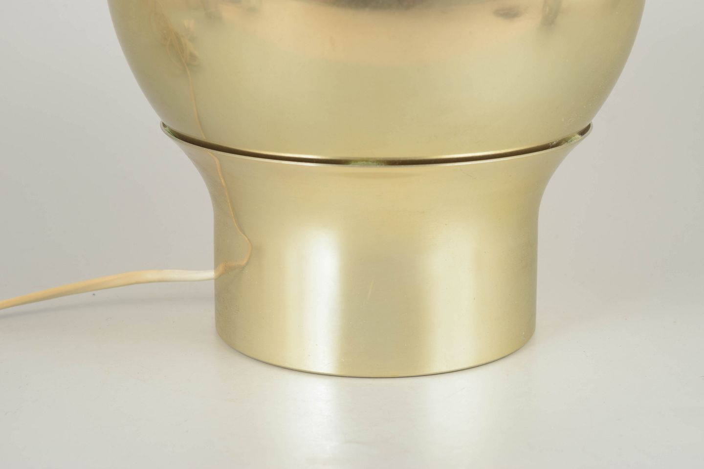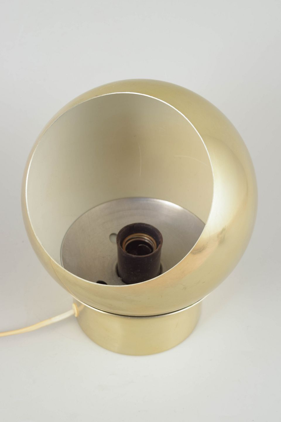 Sculptural table lamp in pressed aluminium, produced in Sweden in 1975. The hemispherical “hemi-klot” base creates a bold, modern presence, with the brushed metal surface reflecting the industrial aesthetic of the 1970s.