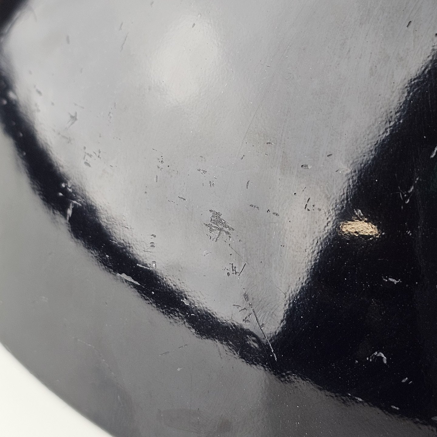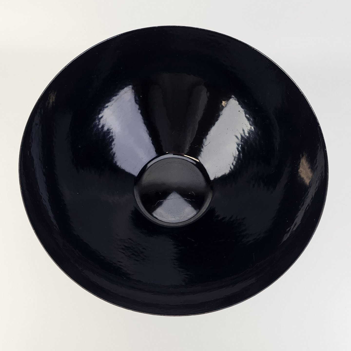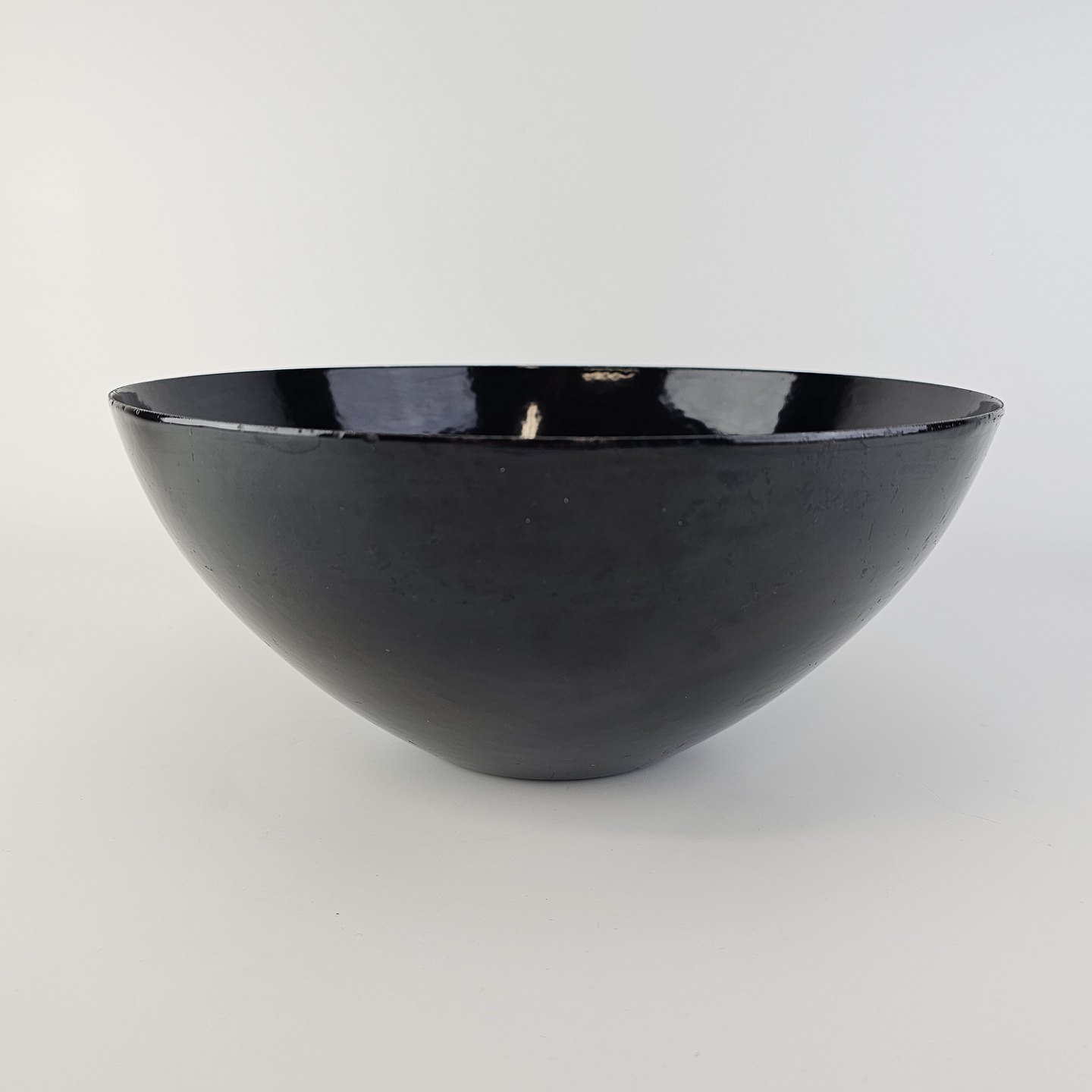 Text available in Danish: Krenit skål af sort metal med sort emalje indvendigt og udvendigt