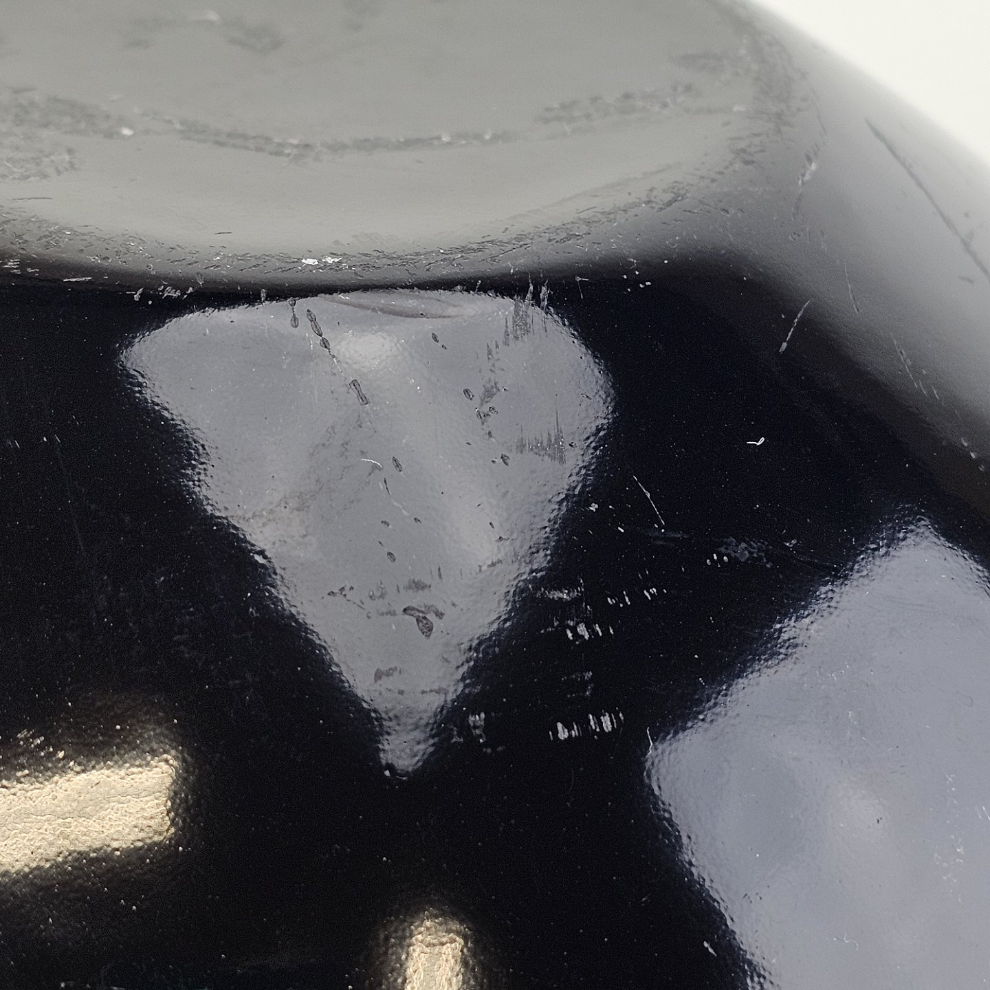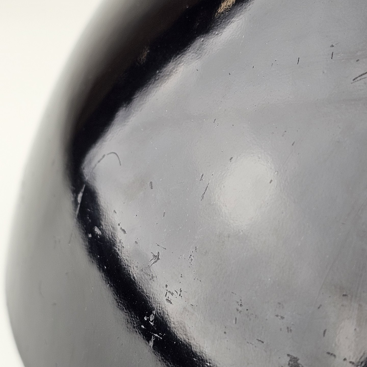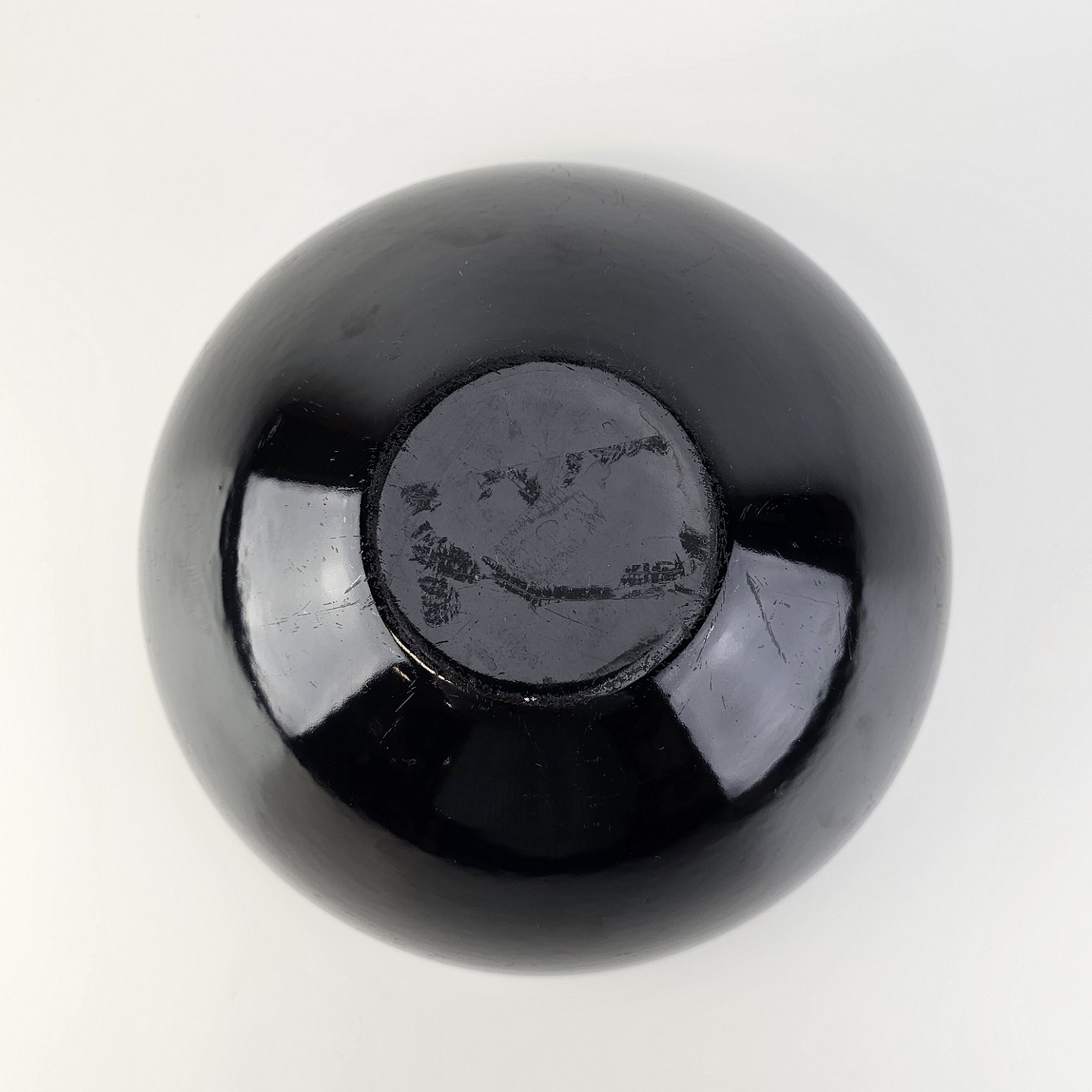 Text available in Danish: Krenit skål af sort metal med sort emalje indvendigt og udvendigt
