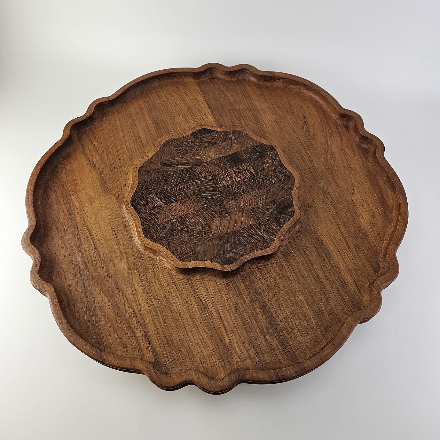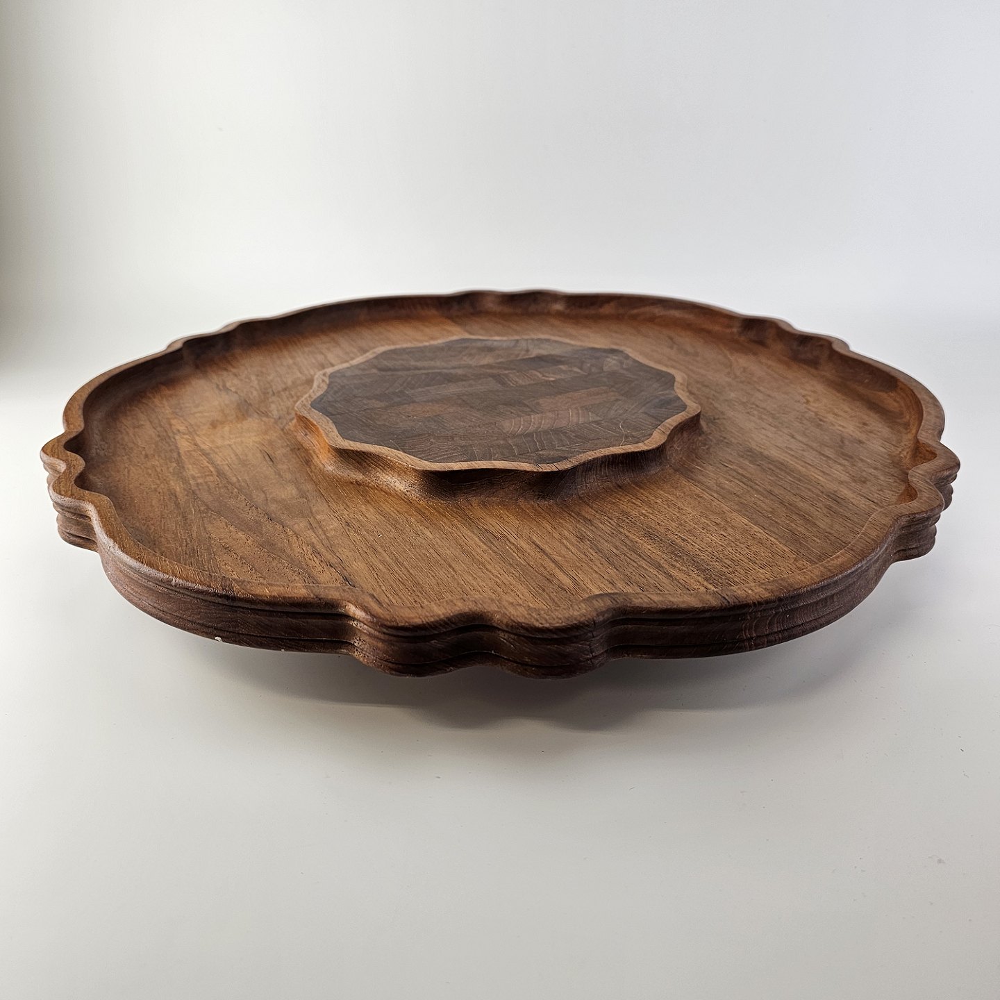 Roterende serveringsbakke i teaktræ