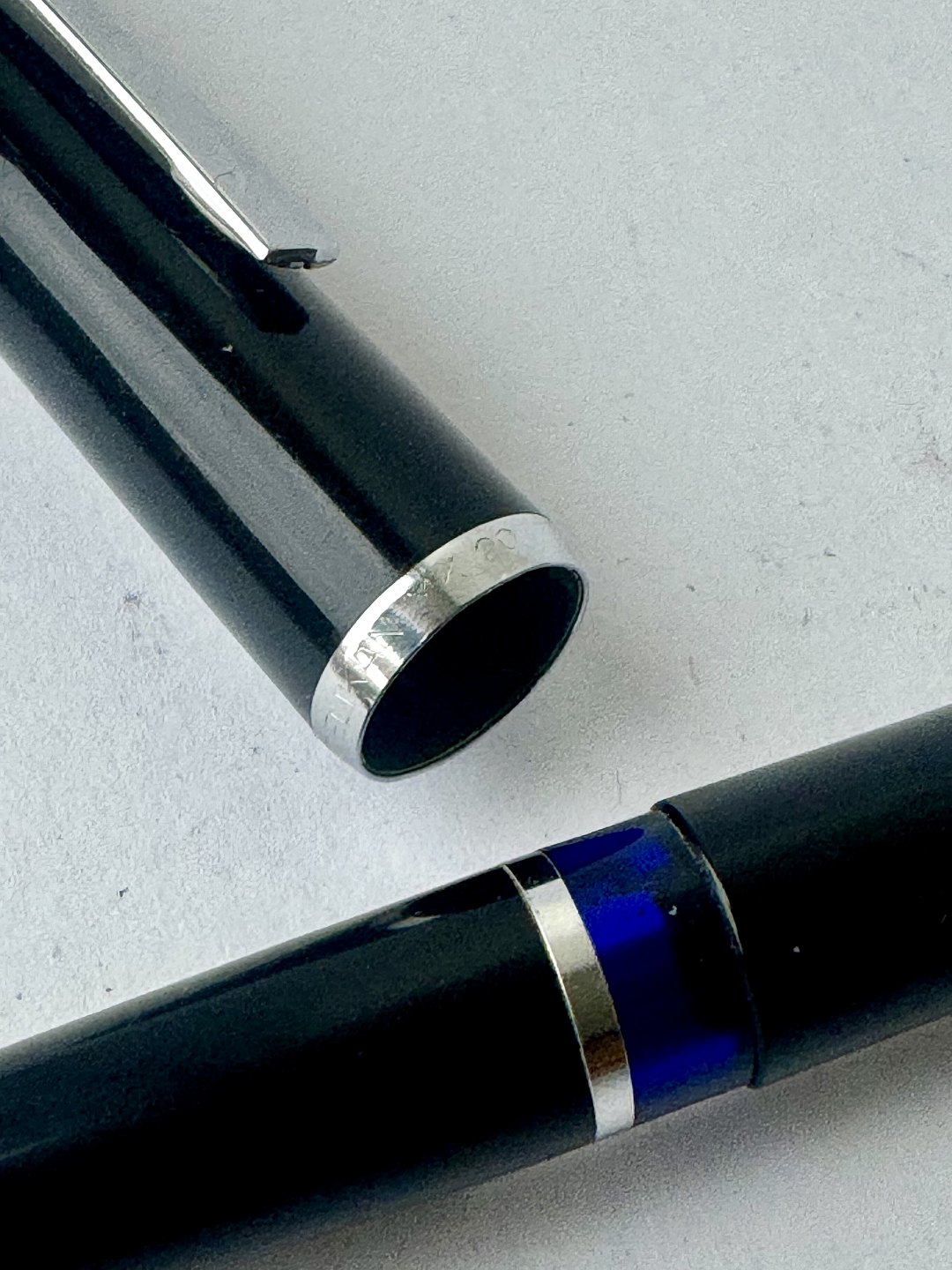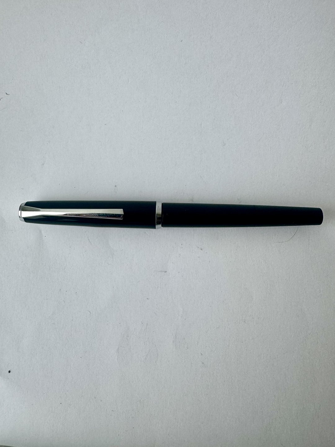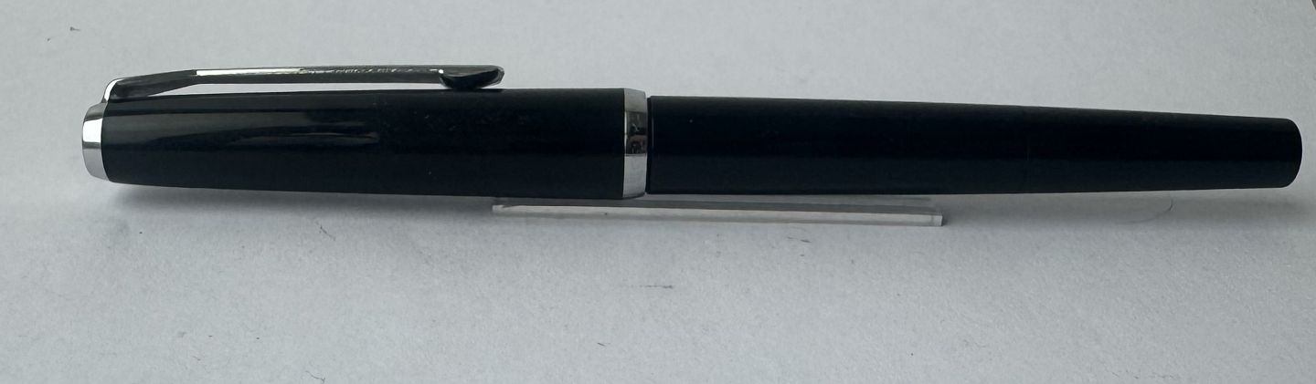 Vintage back Pelikan Silvexa 20 fountain pen with chrome-plated parts. Cartridge filling system. Made in Germany in the mid-1960s. A new refill must be inserted before it can write again. Length: 13.4 cm
