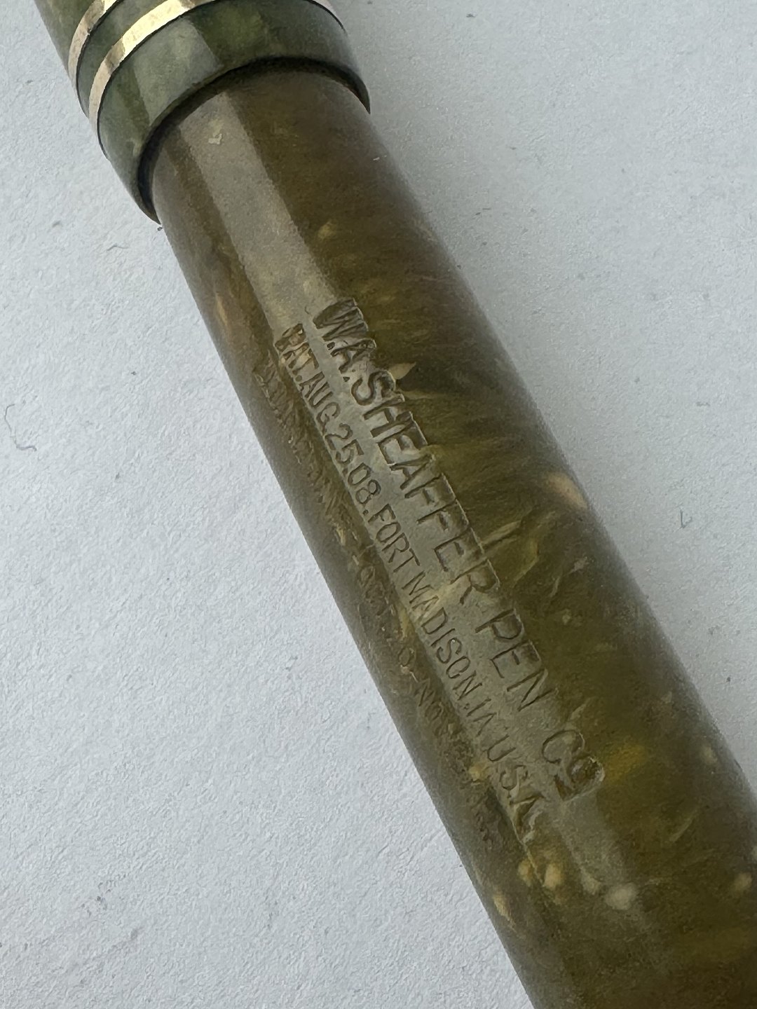 Short green marbled Sheaffer’s fountain pen