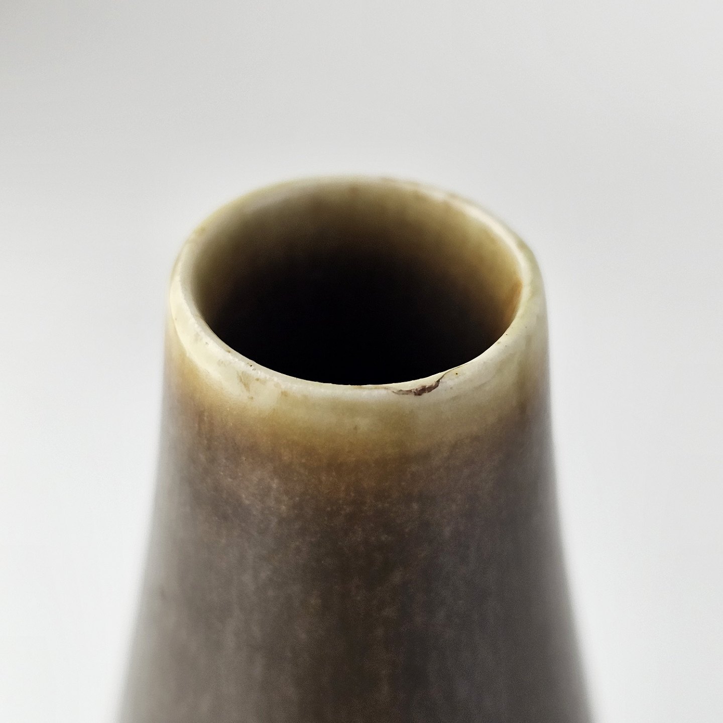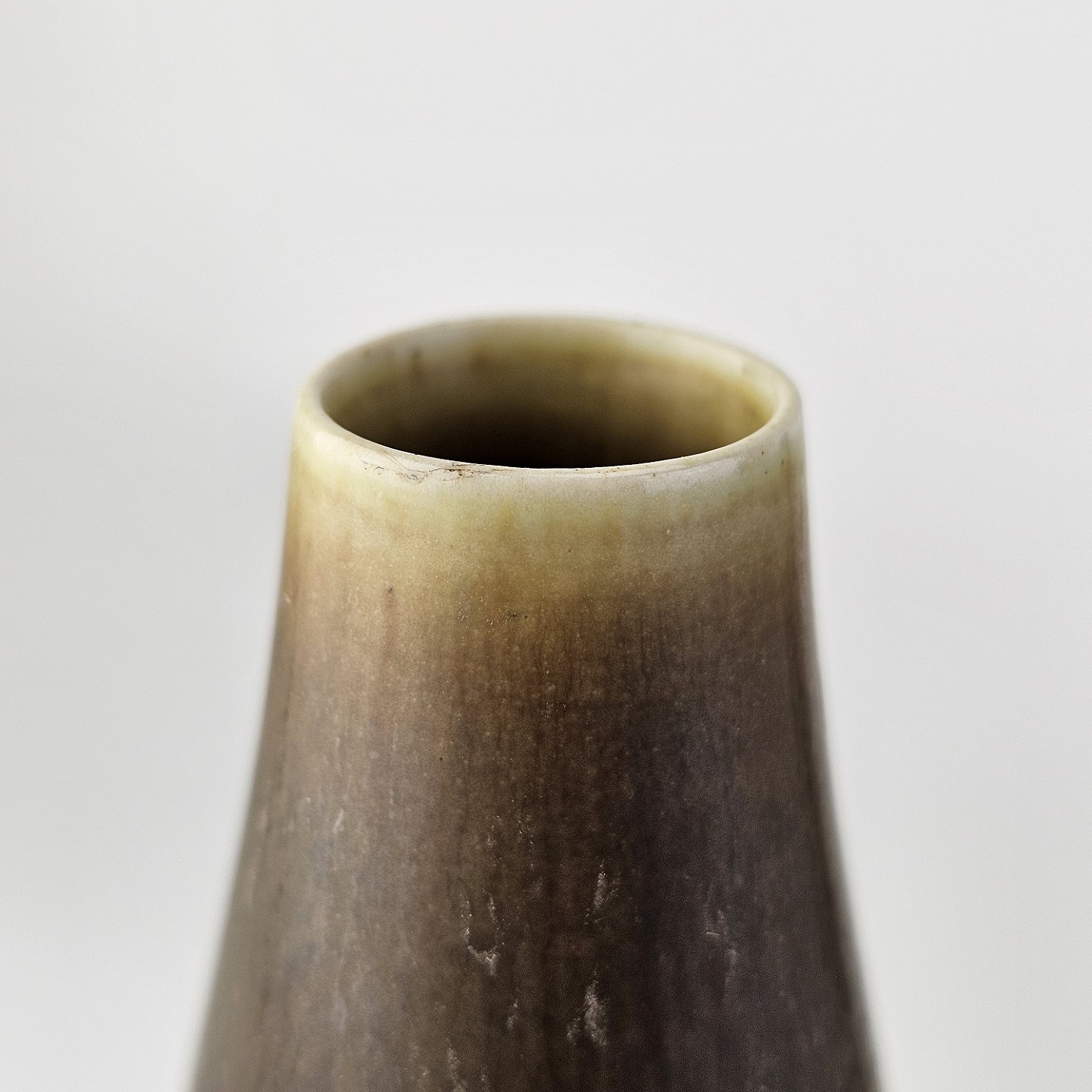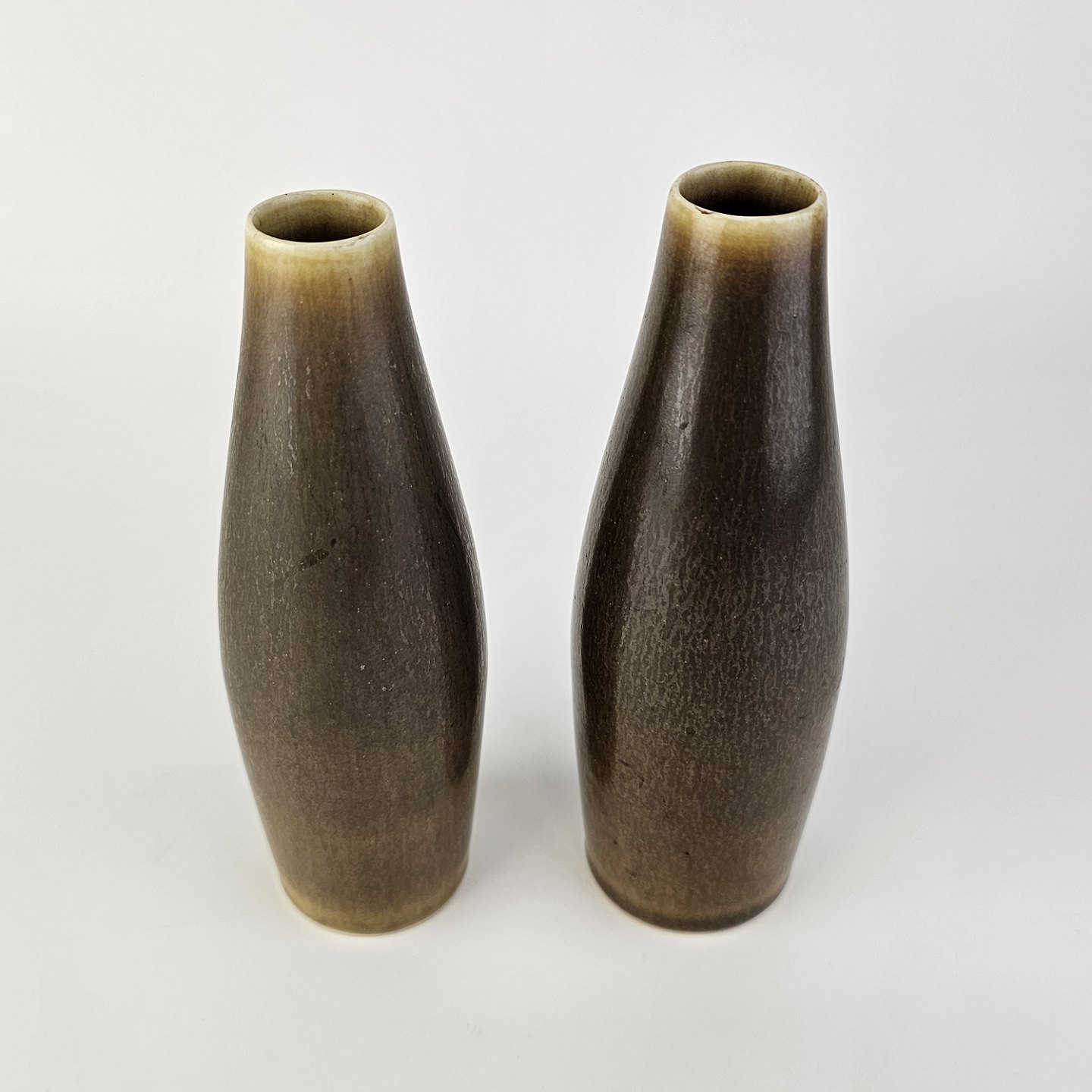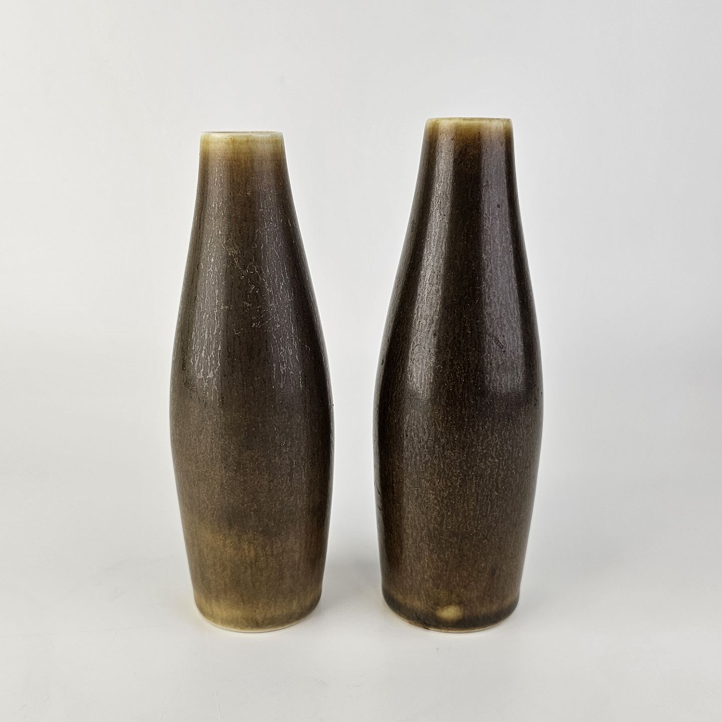 Sæt af to vaser i stentøj i harepelsglasur og med indsnævret hals