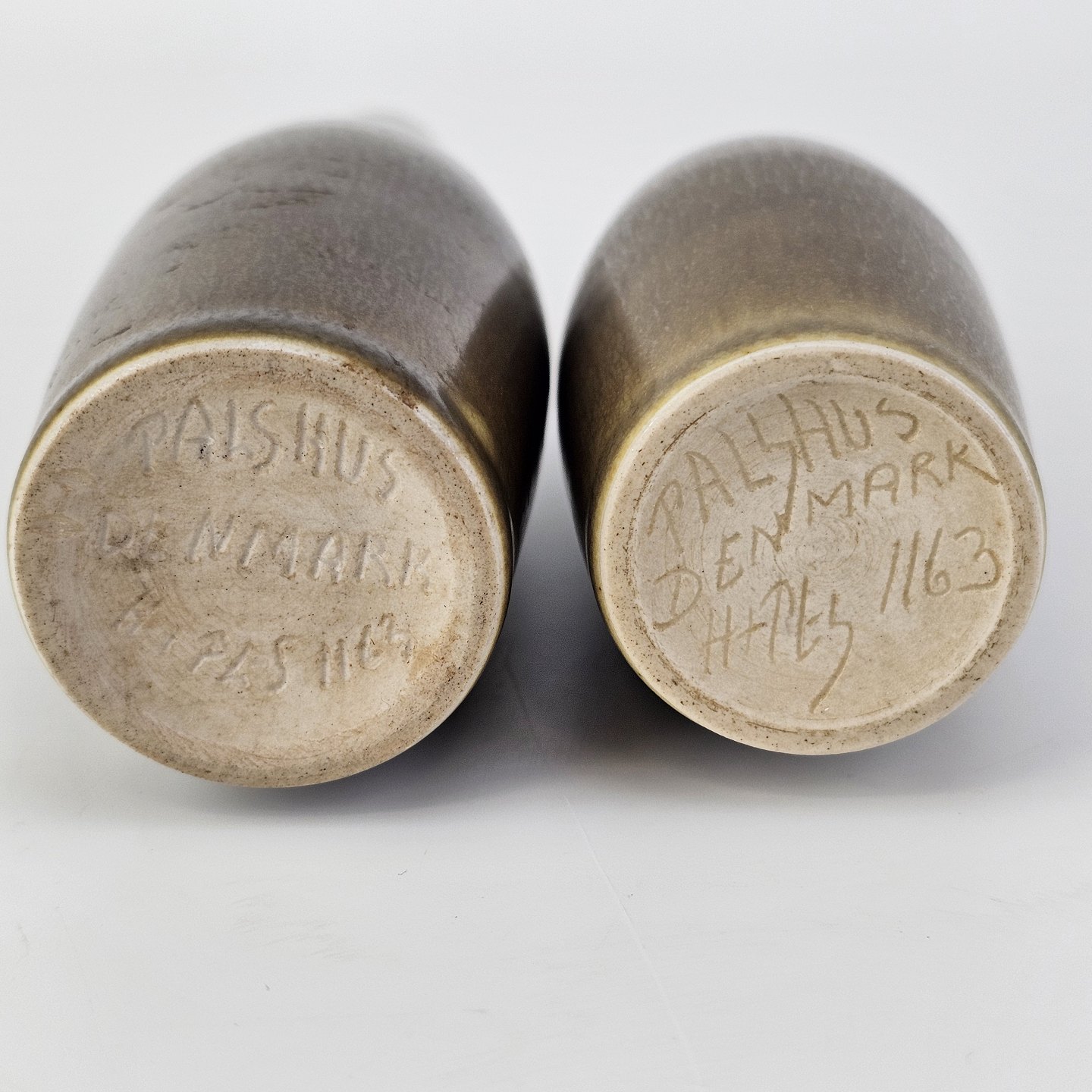 Begge vaser er markeret med H+PLS 1163 under bunden