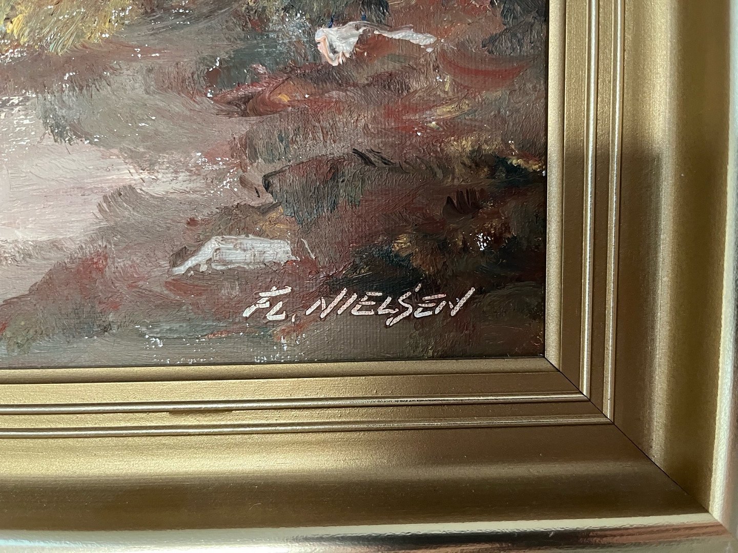 Oil painting by Flemming NielsenThe painting is an oil painting signed by the renowned Danish artist Flemming Nielsen (also known as Flemming Flev Nielsen).
