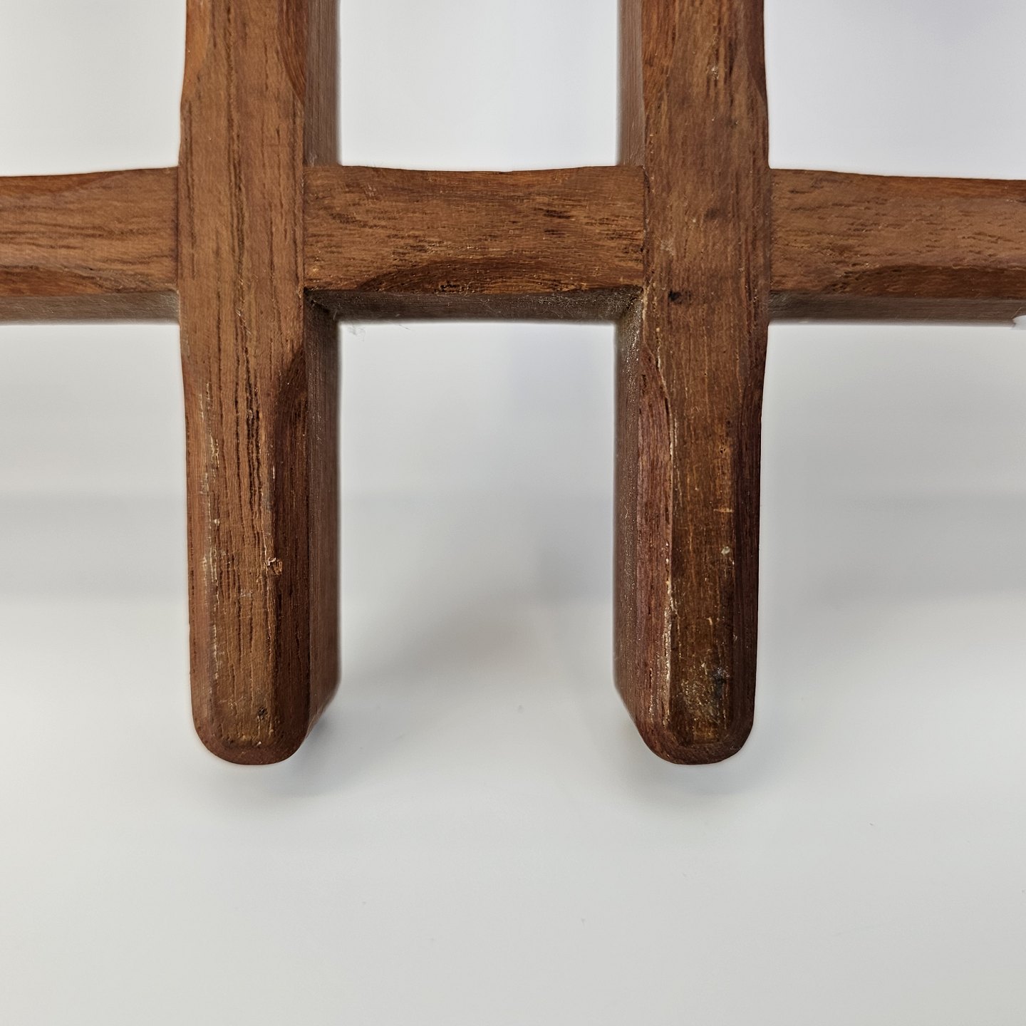 Fremstår med diverse små mærker og skrammer på træets overflade
