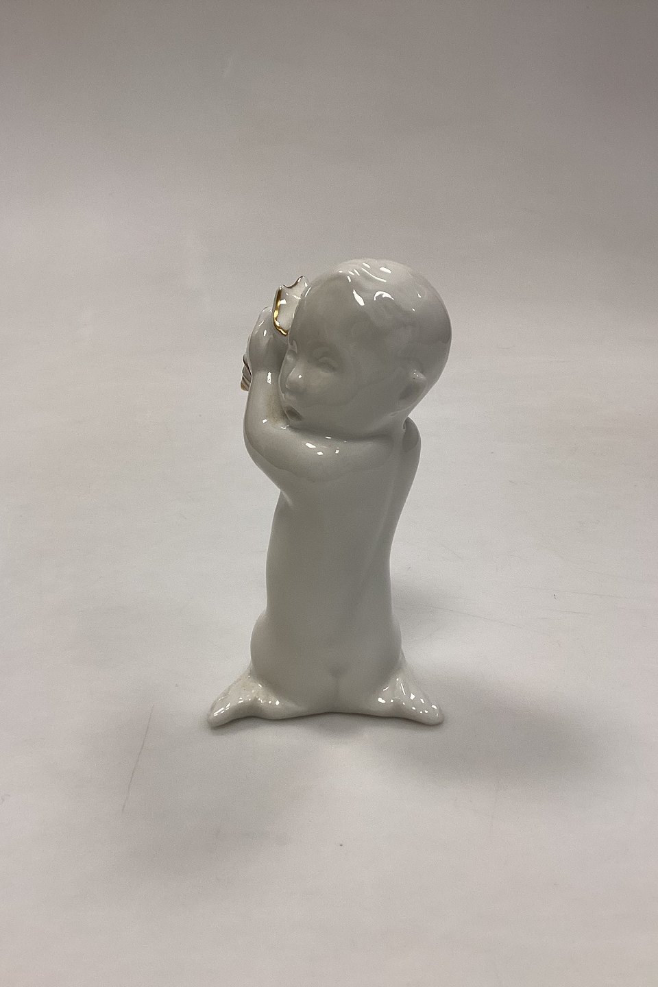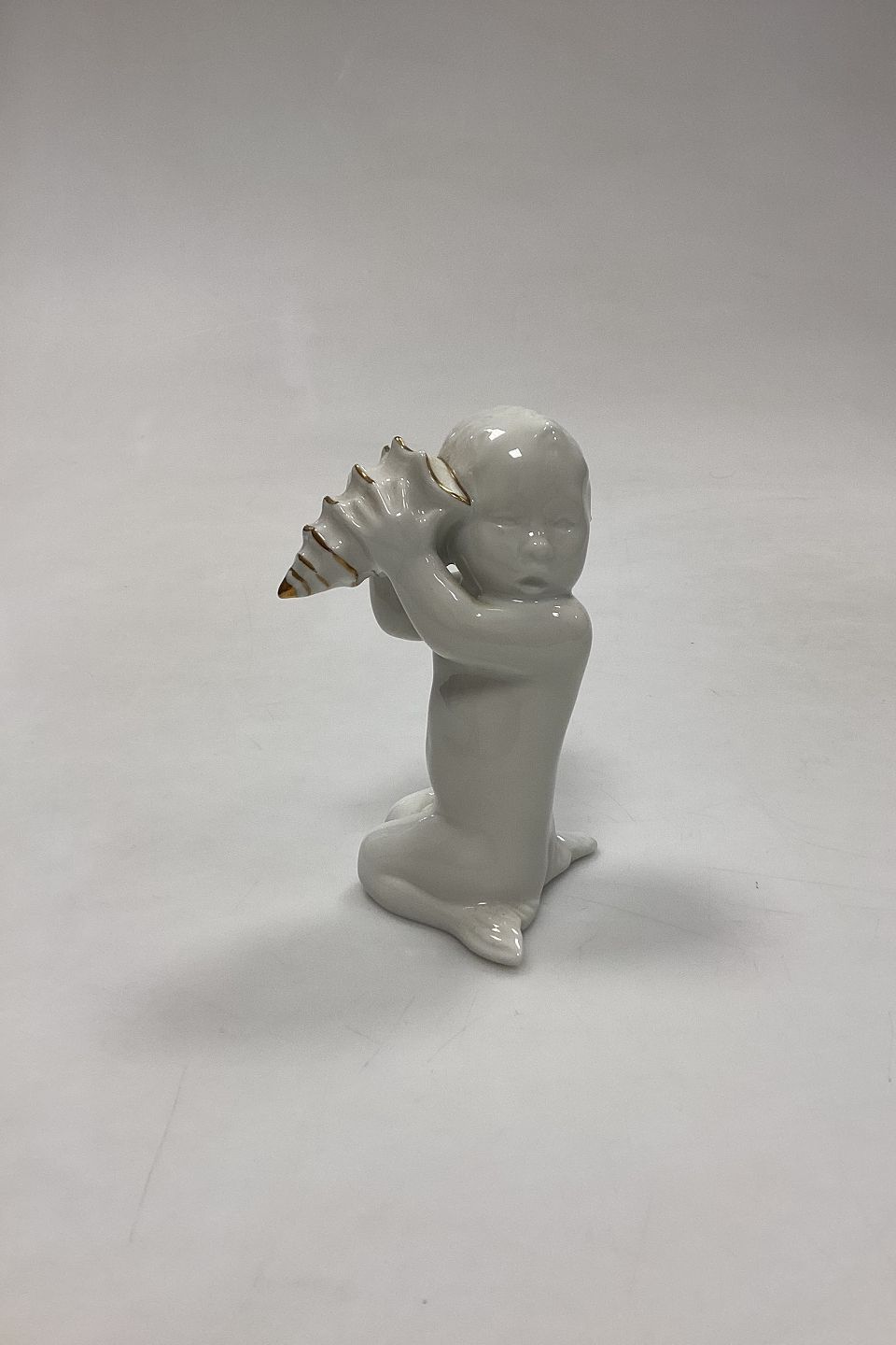 Bing and Grondahl Figurine - Sea Child with Conch No. 2264. Blanc de Chine porcelain with gold. Designed by Ebbe Sadolin/Svend Jespersen.