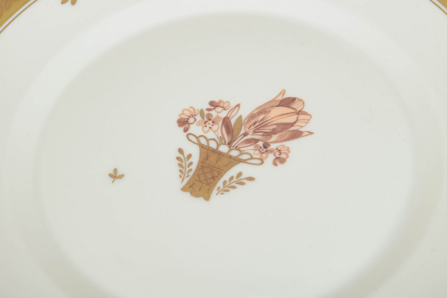 Royal Copenhagen’s “Golden Basket” series combines traditional porcelain forms with refined gilded accents and hand-painted floral decoration. Highly appreciated among collectors for its timeless and elegant aesthetic.
