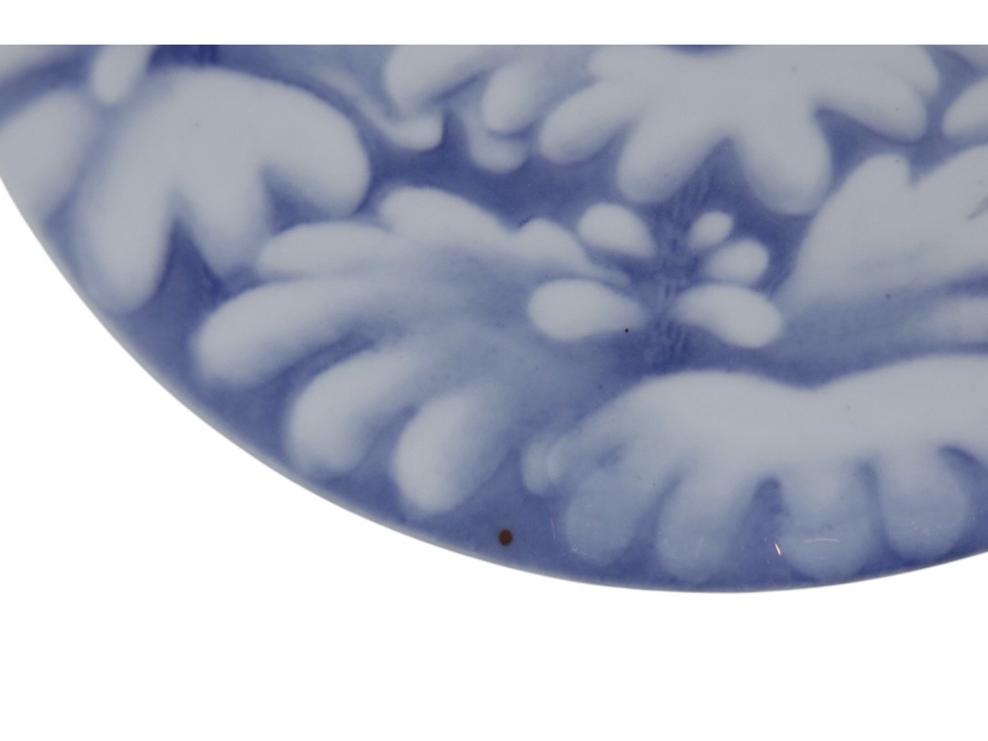 There is one small black spot in the glaze on the bottom of the plate, please see close-up picture, otherwise perfect condition.