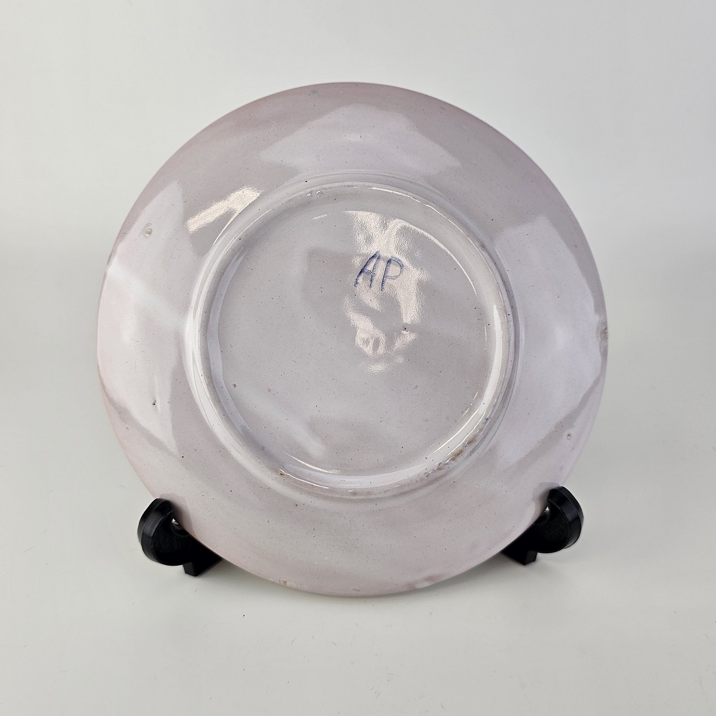 Kop og underkop i keramik med gule detaljer og blomsterdekoration
