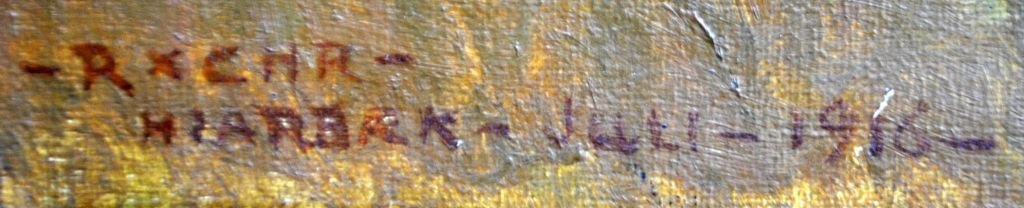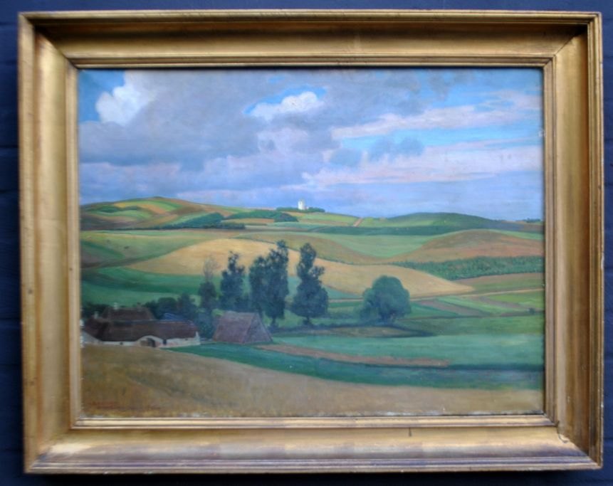 Christiansen, Rasmus (1863 - 1940) Denmark: Landscape at Hjarbæk, 1916. Oil on canvas. Signed: RxCHR - Hjarbæk - July - 1916. H: 56 cm. W: 106 cm.