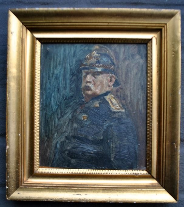 Hansen, Hans Nicolaj (1853 - 1923) Denmark: Portrait of Deputy Fire Chief, Captain August Carlsen. Oil on cardboard. The work is inscribed 1891 on the verso. 19 x 16.5 cm.