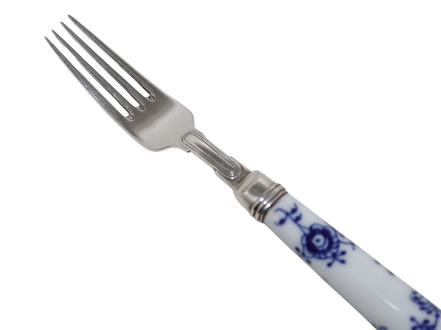 Royal Copenhagen Blue Fluted Plain, rare fork with Anton Michelsen sterling silver.