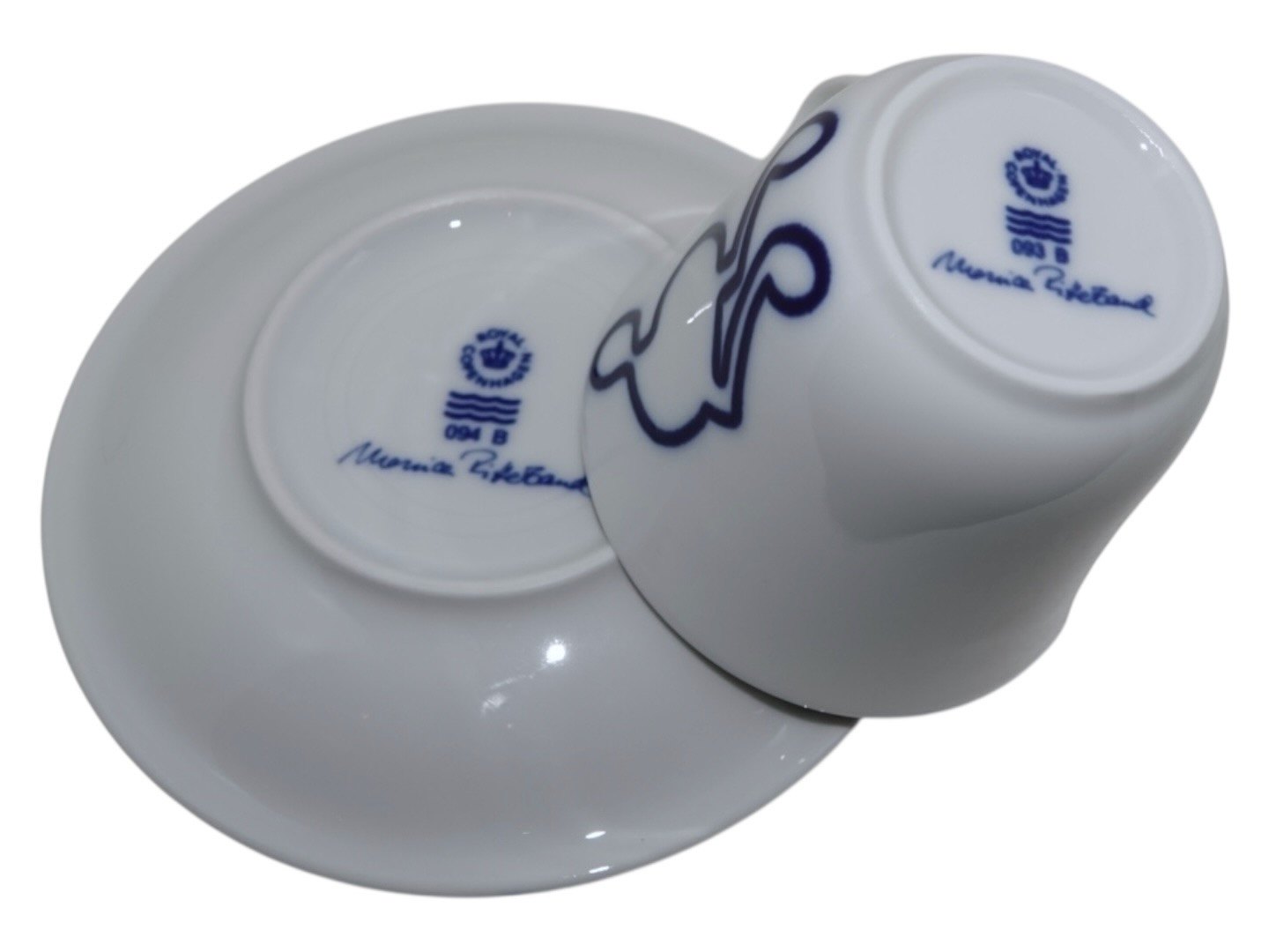 Royal Copenhagen Musica, high handle cup with matching saucer. Decoration B.