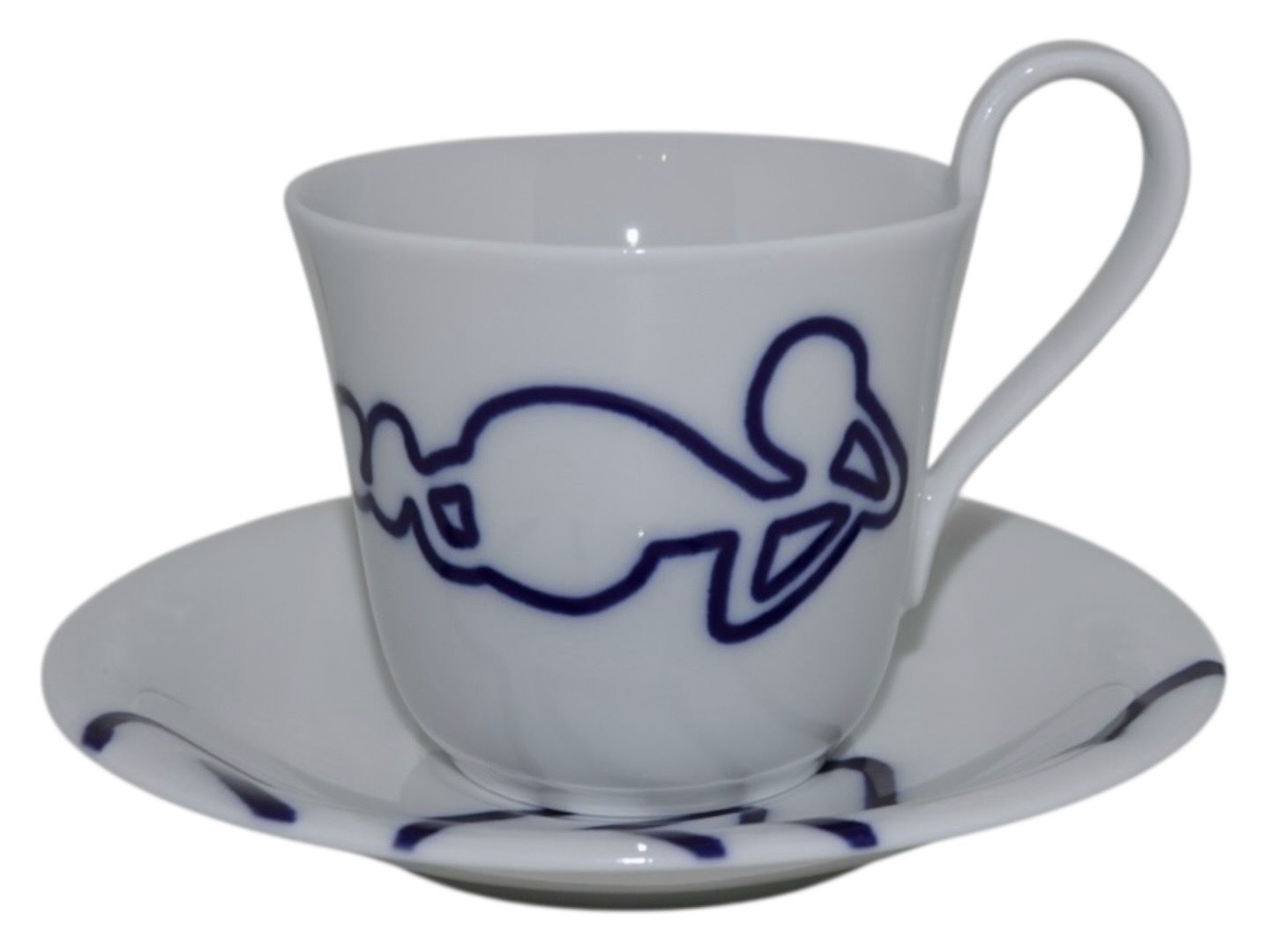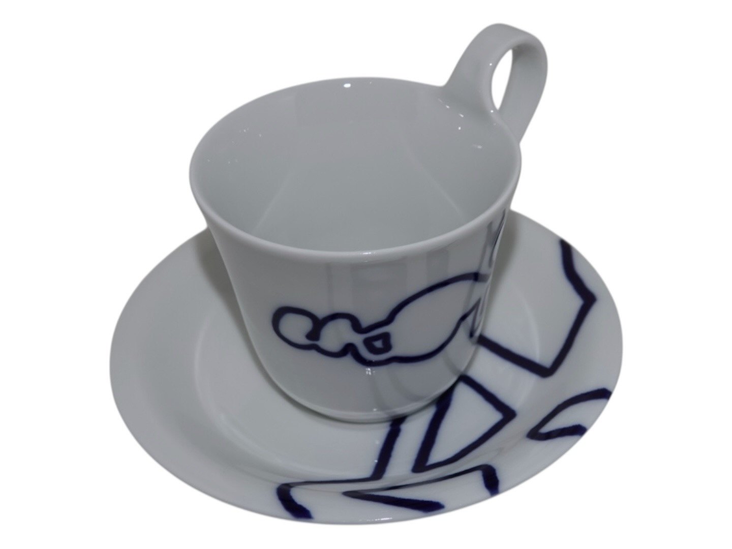 Royal Copenhagen Musica, high handle cup with matching saucer. Decoration D.
