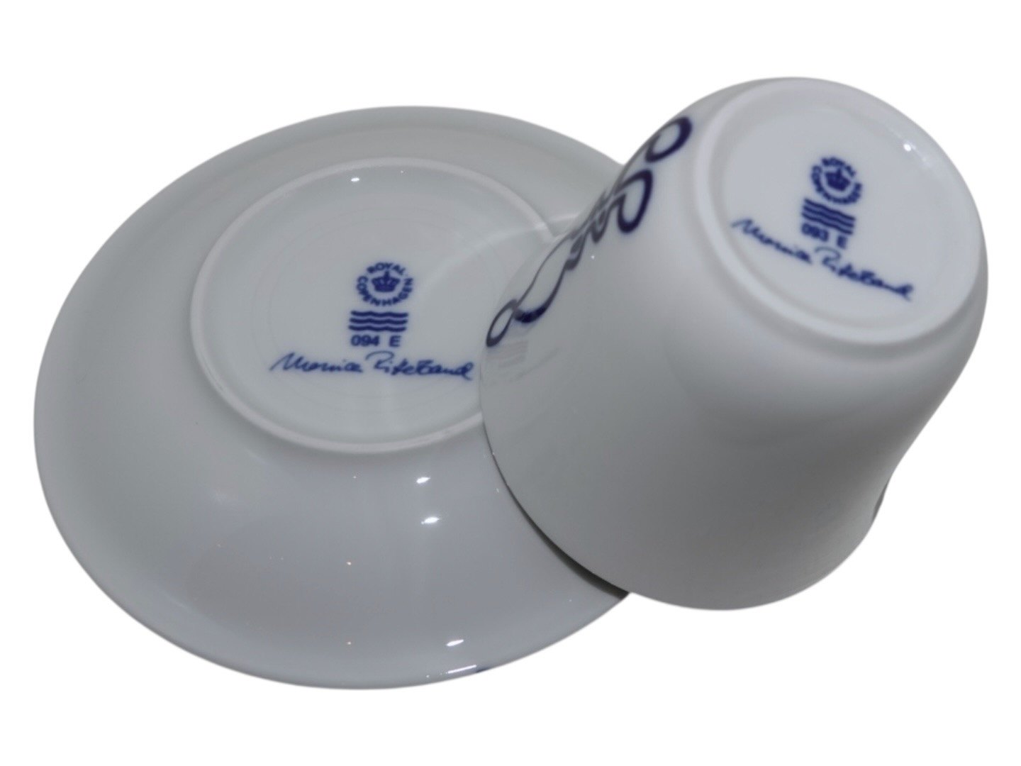 Royal Copenhagen Musica, high handle cup with matching saucer. Decoration E.