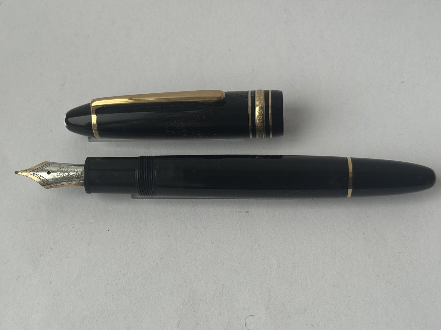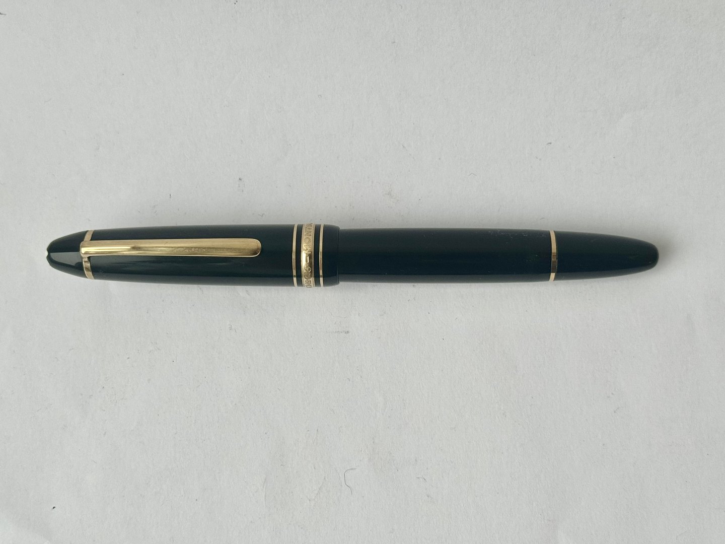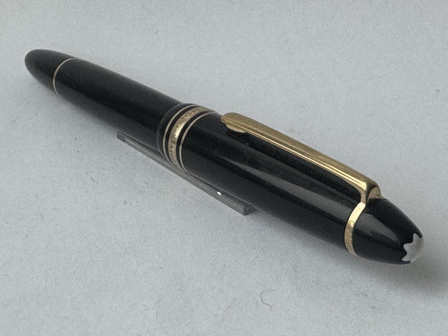 Black Montblanc Meisterstück LeGrand fountain pen with all original Montblanc parts including a large 14 carat gold nib. Ink filling with piston filler. In good condition and ready to be use. L. 14.3 cm.