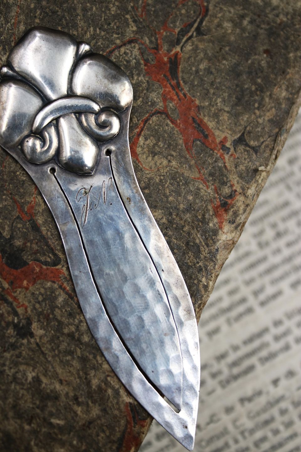 Old bookmark in silver, stamped 830s with the French lily motif...