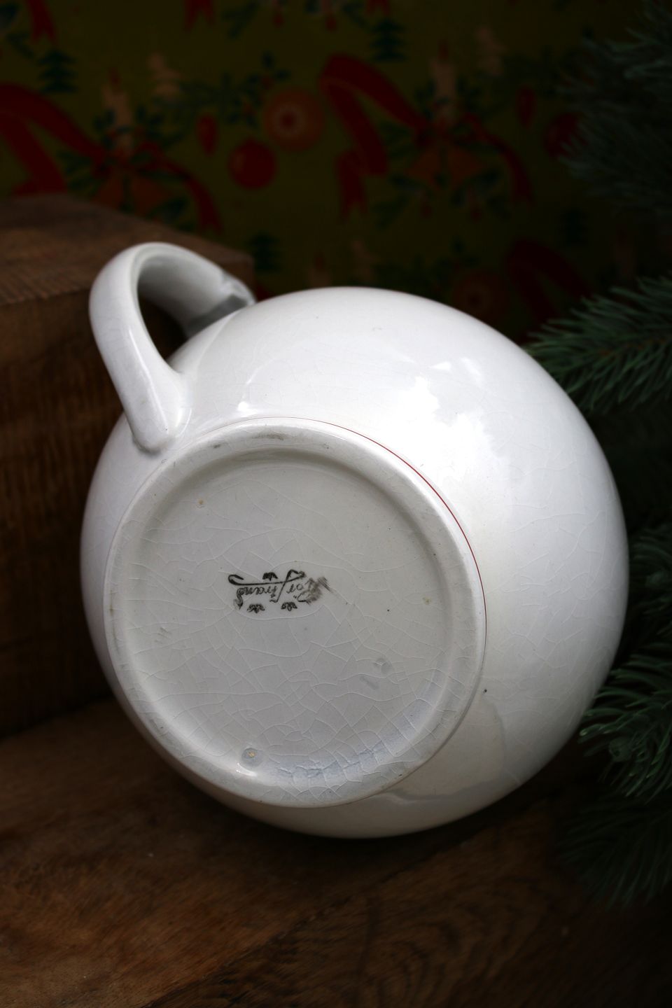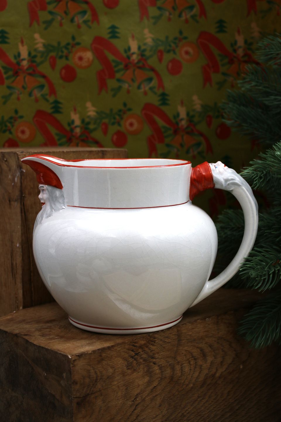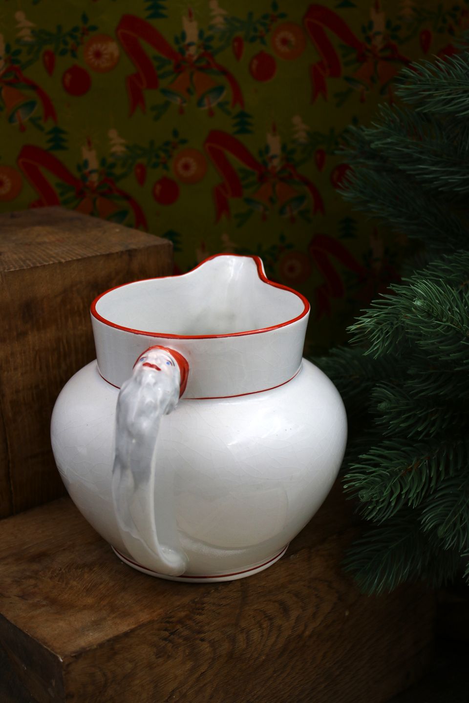 LARGE old Swedish "manor" Christmas jug in faience with elves on the pouring spout and on the handle. H:15m. Dia.: 17cm. L: 22cm. The Christmas jug is from the Rörstrand faience factory.