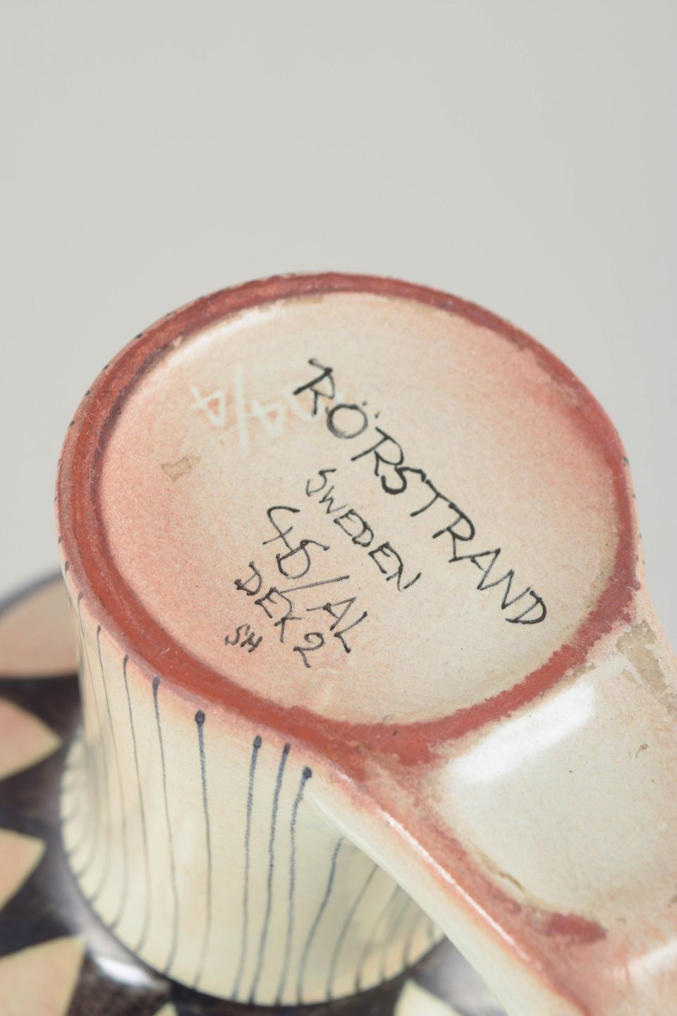 Carl-Harry Stålhane was one of the most influential Swedish ceramic artists of the 20th century. He worked at Rörstrand from 1950 to 1970, succeeding Gunnar Nylund as artistic director. His ceramics are distinguished by architectural forms, graphic decoration, and restrained yet expressive glazes. Today, Stålhane is regarded as a key figure in both Swedish studio ceramics and post-war industrial art pottery.