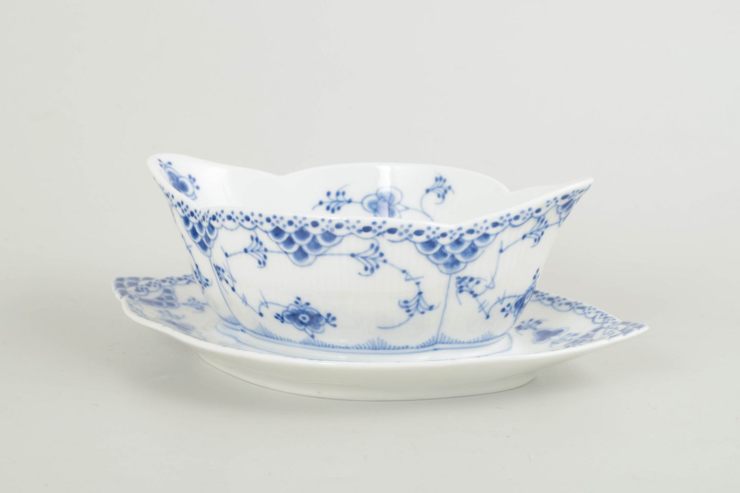 Introduced in 1885, Blue Fluted Half Lace represents a more decorative evolution of the original Blue Fluted Plain service. Sauceboats with integrated stands were essential elements of formal table settings, combining functionality with Royal Copenhagen’s renowned hand-painted craftsmanship. Late 20th-century examples continue this tradition with consistent quality and timeless design.