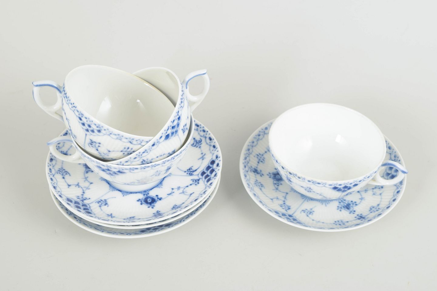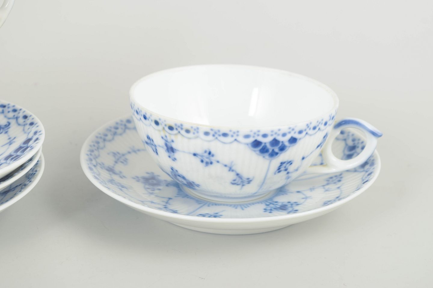 Blue Fluted Half Lace teacups with saucers, set of 4, 1980s.
