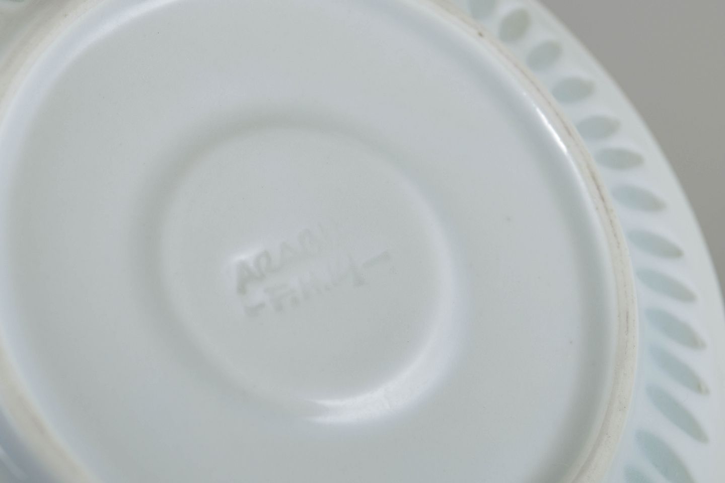 Friedl Holzer-Kjellberg (1905–1993) was an Austrian-born ceramic artist who worked at Arabia in Finland from 1936. She gained international recognition for developing “rice porcelain”, a technique in which pierced decoration is filled with transparent glaze, giving the porcelain a delicate, almost textile-like quality. Her work represents a refined synthesis of technical innovation and Nordic modernism and is highly sought after by collectors today.