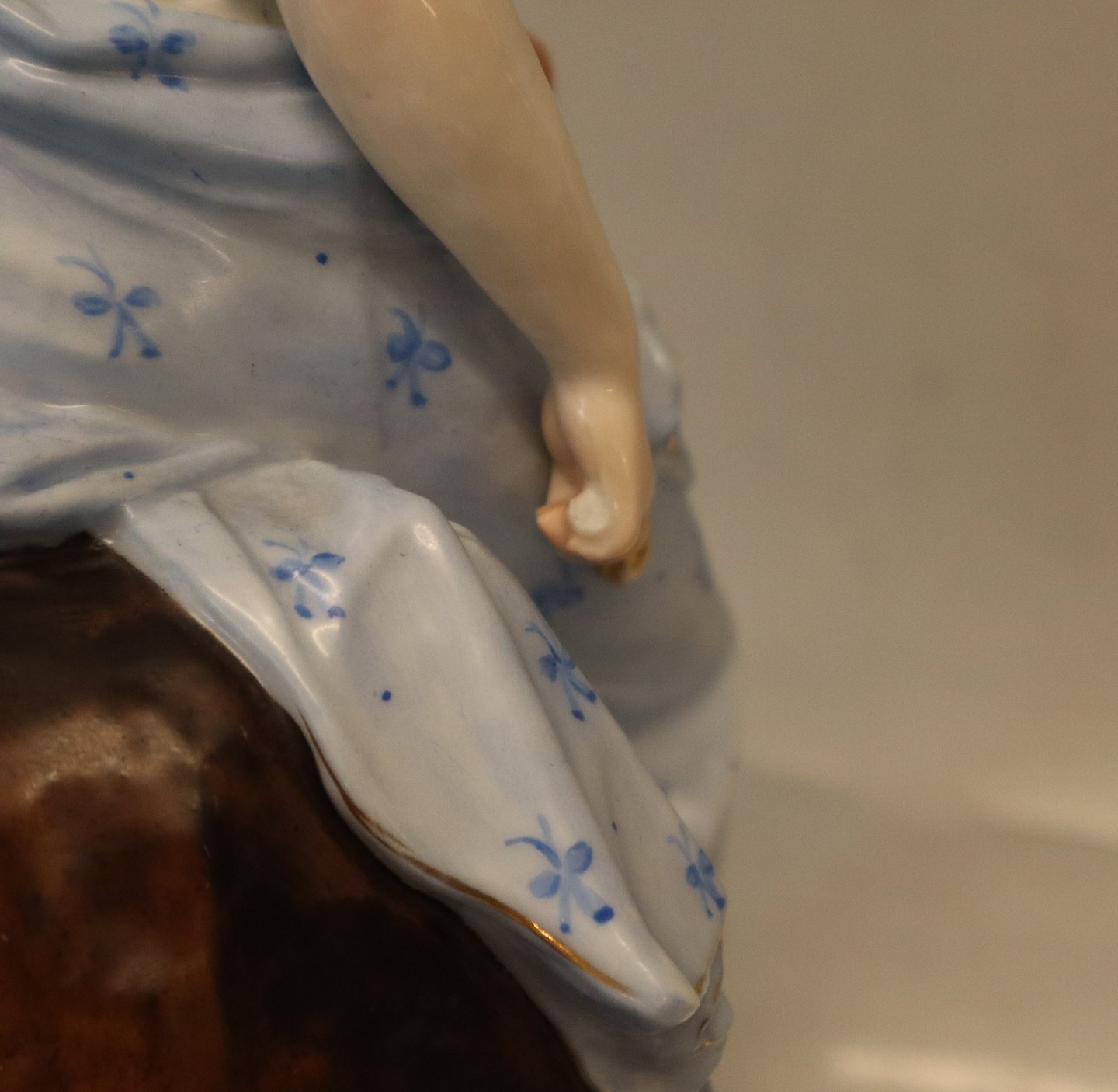 2 Antique European figurines 29 x 18.5 cm Woman with dog and Woman with kid goat