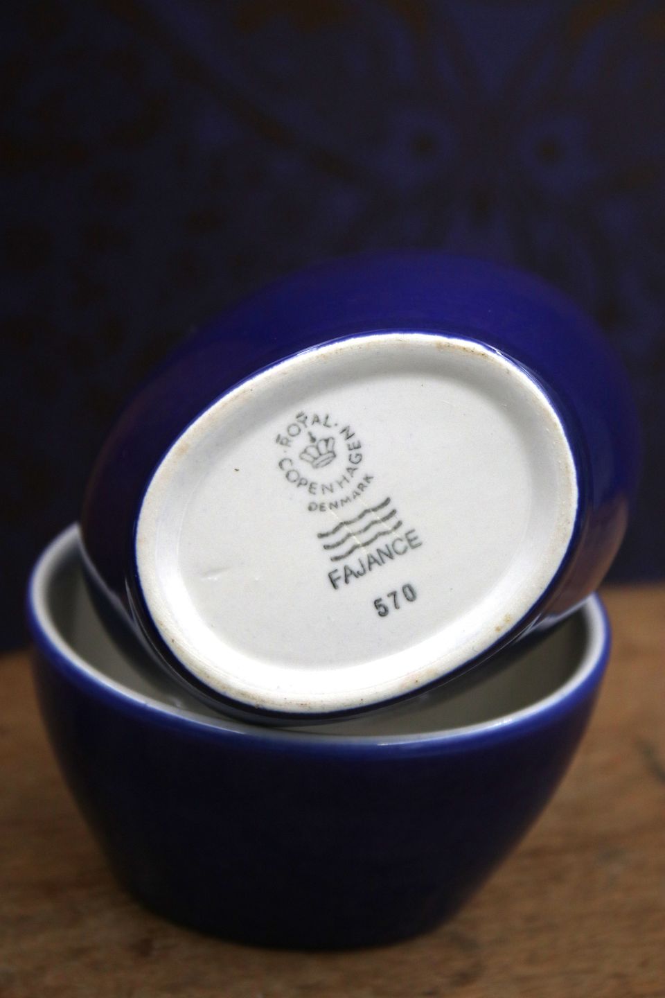 Original Ursula faience small oval serving bowl from Royal Copenhagen designed by Ursula Munch-Petersen in dark blue / white glaze.