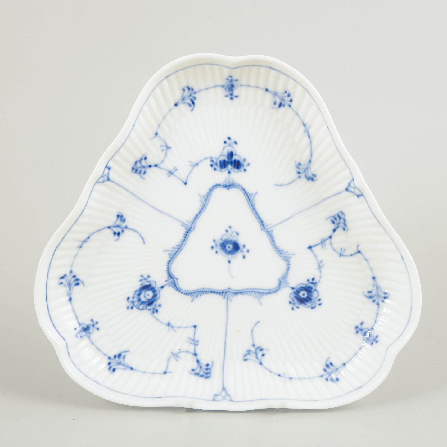 Royal Copenhagen Blue Fluted Plain triangular dish, 1965.