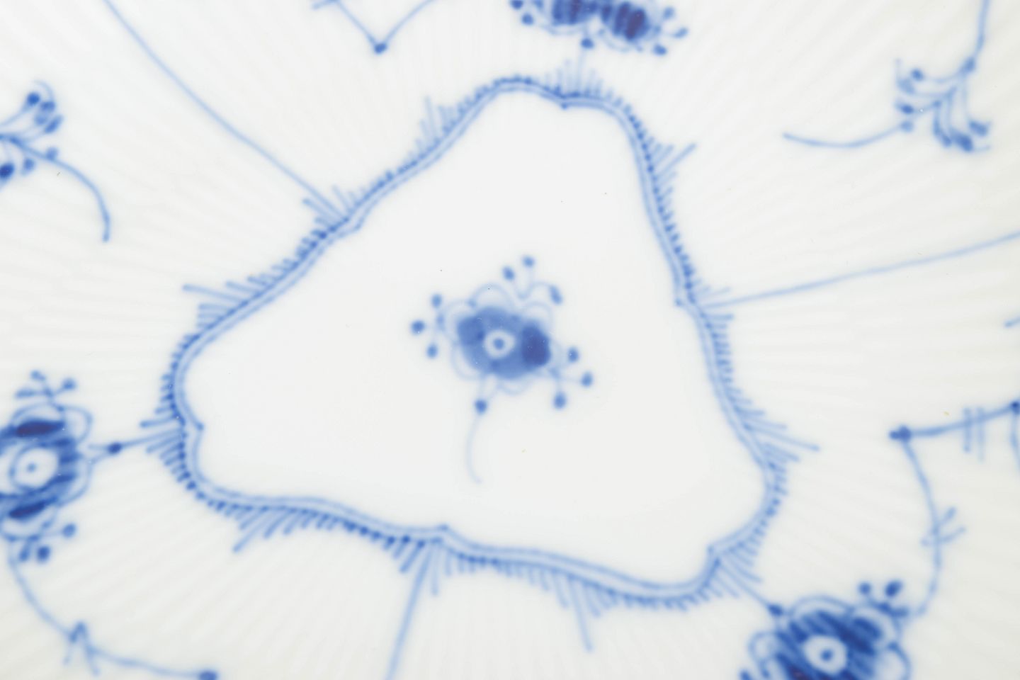 Blue Fluted Plain was introduced in 1775 and is Royal Copenhagen’s oldest and most traditional pattern. Inspired by Chinese blue-and-white porcelain, it is characterised by its disciplined composition, rhythmic brushwork and finely executed hand-painted decoration. More sculptural serving forms such as this triangular dish were produced in smaller numbers and reflect the continued refinement of classic tableware designs in the mid-20th century.