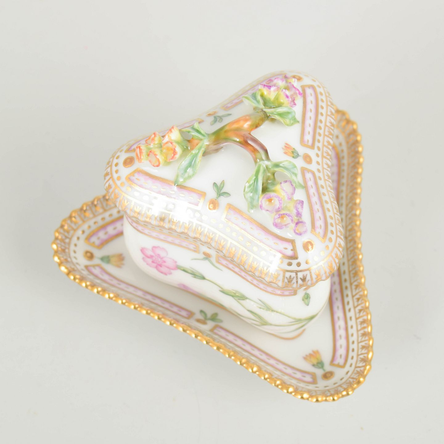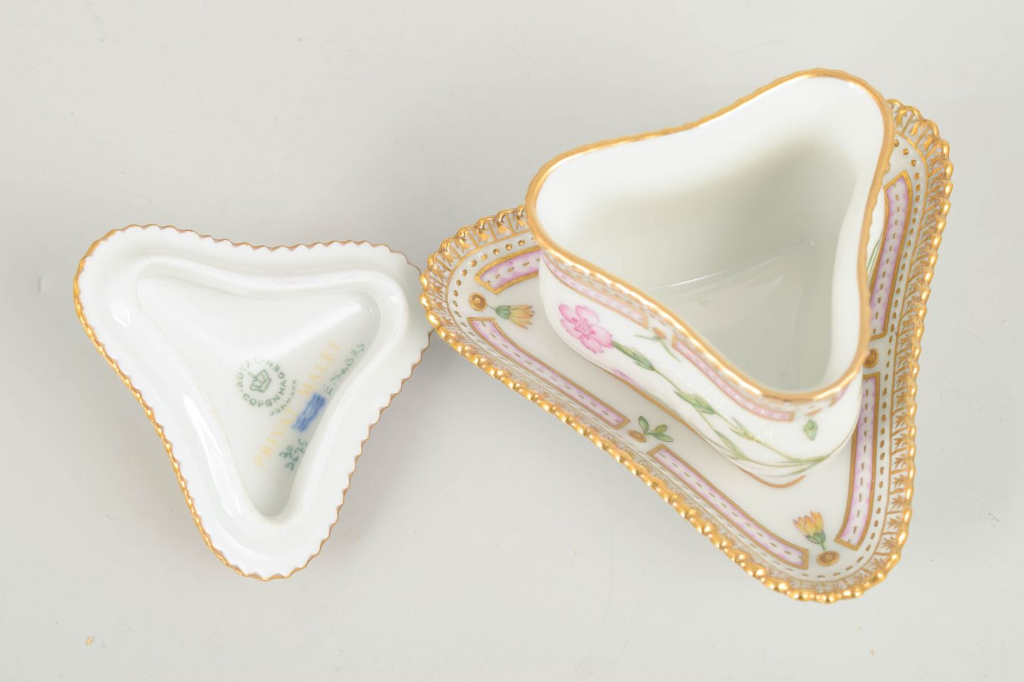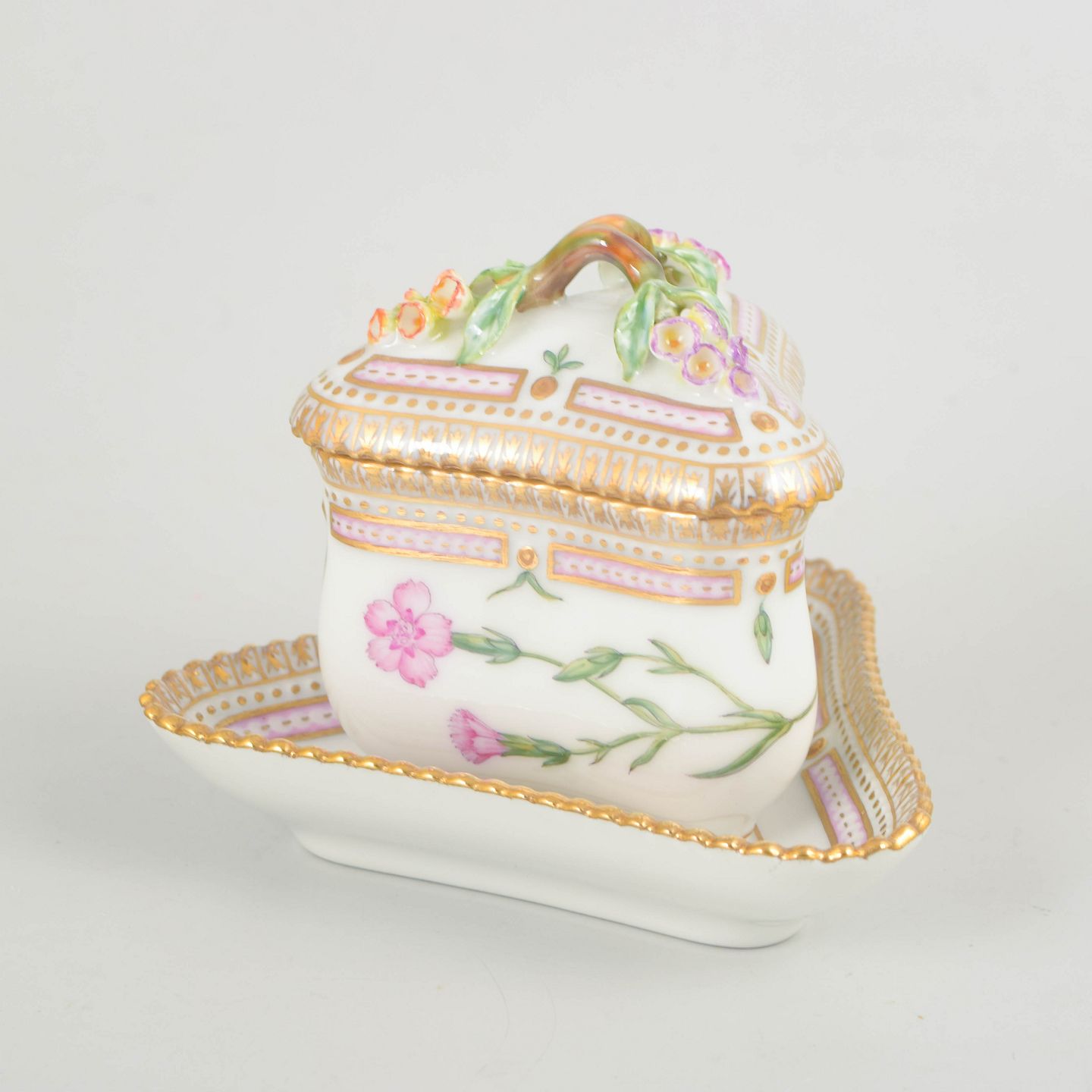 Bio: The Flora Danica service was introduced in 1790 and is regarded as one of Royal Copenhagen’s most prestigious productions. The decoration is based on the monumental botanical work Flora Danica and is renowned for its high level of detail and exceptional craftsmanship. Smaller serving pieces such as cream cups formed an integral part of the classic coffee service and today enhance the overall collectability of the set.