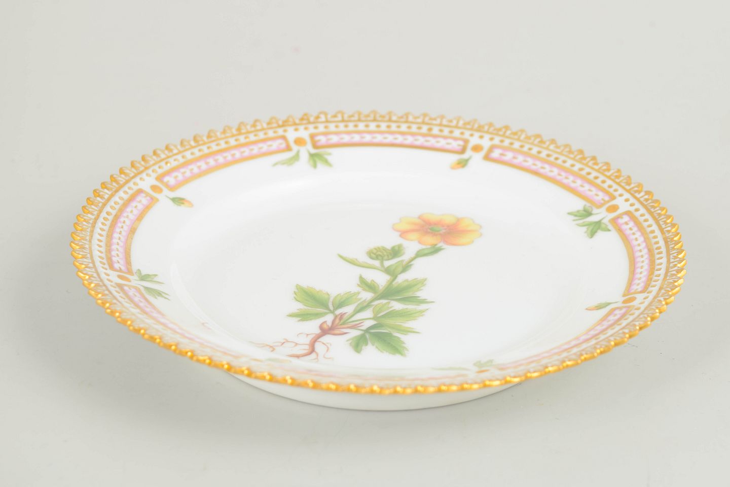 Elegant side plate from the iconic Flora Danica service, hand-painted with a botanical motif derived from the Flora Danica publication. The plate is executed in the characteristic form and refined rim that define the service’s exclusive and classical appearance.