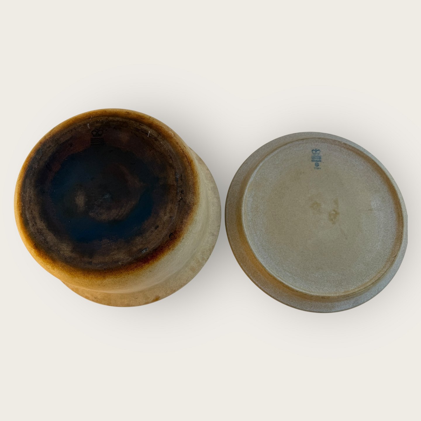 Royal Copenhagen, Ildpot / Firepot, Large pot with lid, #22506 and #22514, 29cm in diameter and 13.5cm high, 1st grade, Design Grethe Meyer * Very small chip on the lid (see photo) and some darkness under the bottom, otherwise in good used condition*