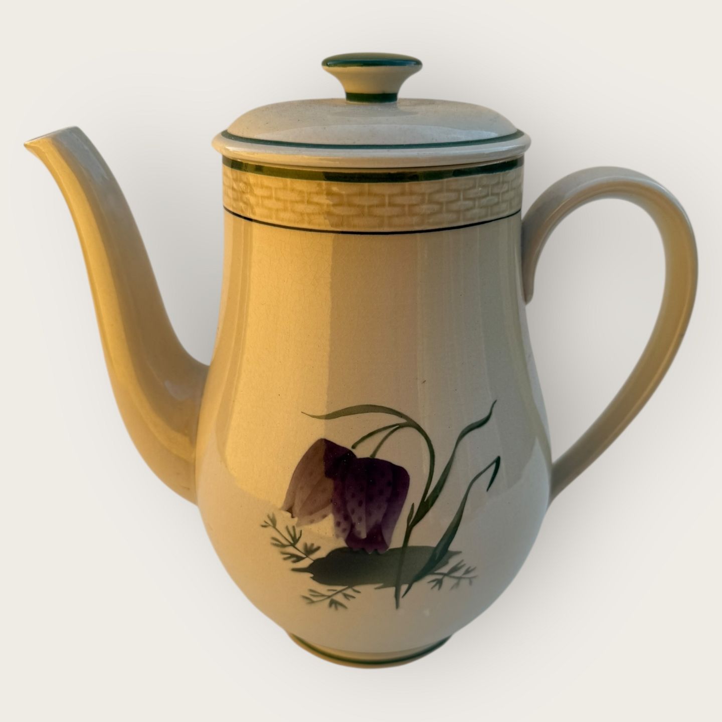 Royal Copenhagen, Aluminia, Victoria II frame form, Vibe egg, Fritillaria meleagris, Coffee pot, 20cm high *nice condition*