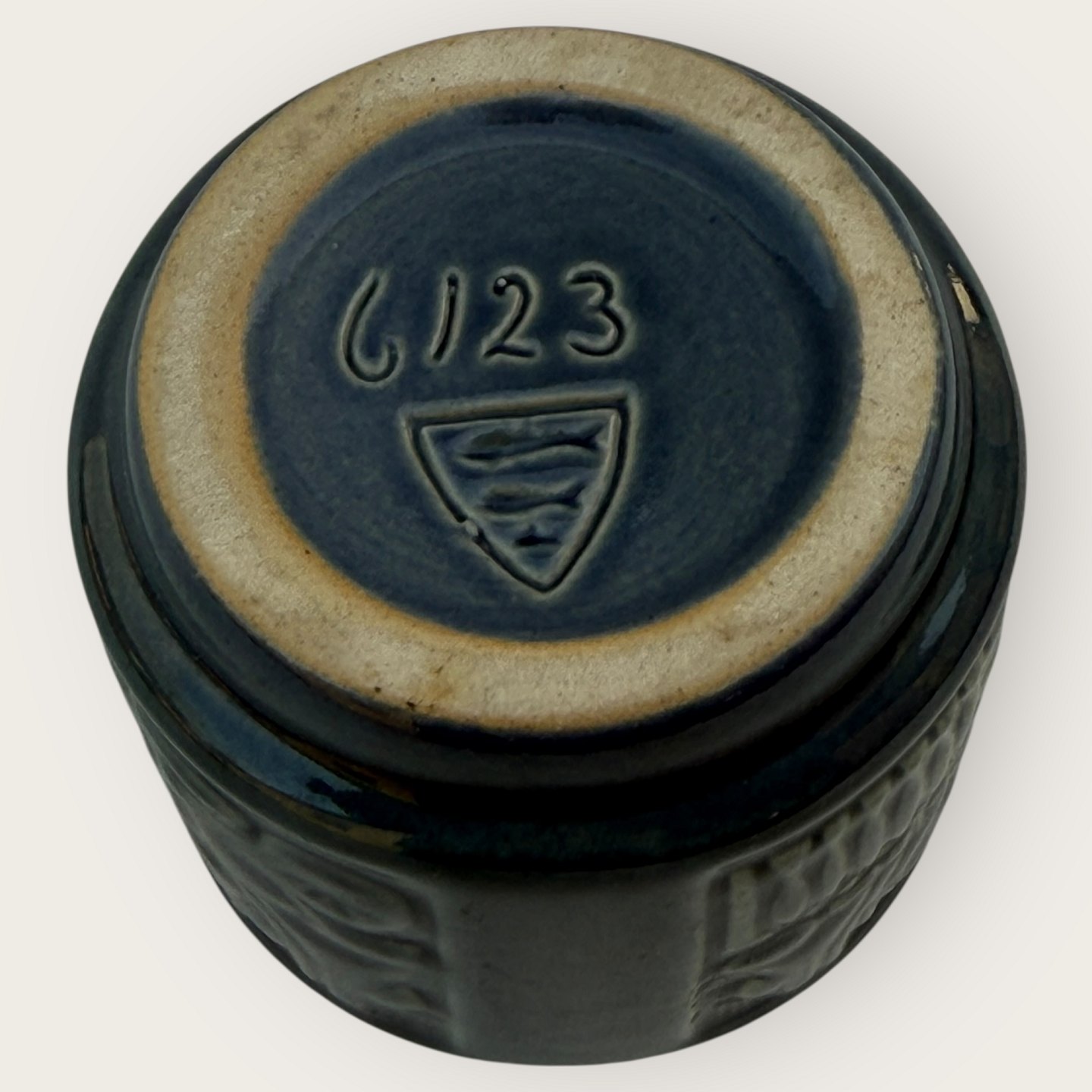 Bornholm ceramics, Michael Andersen, Small vase with motifs from Bornholm, smokehouses, fishermen's wives, etc. Height 8cm, diameter 6.5cm, #6123, fine condition.
