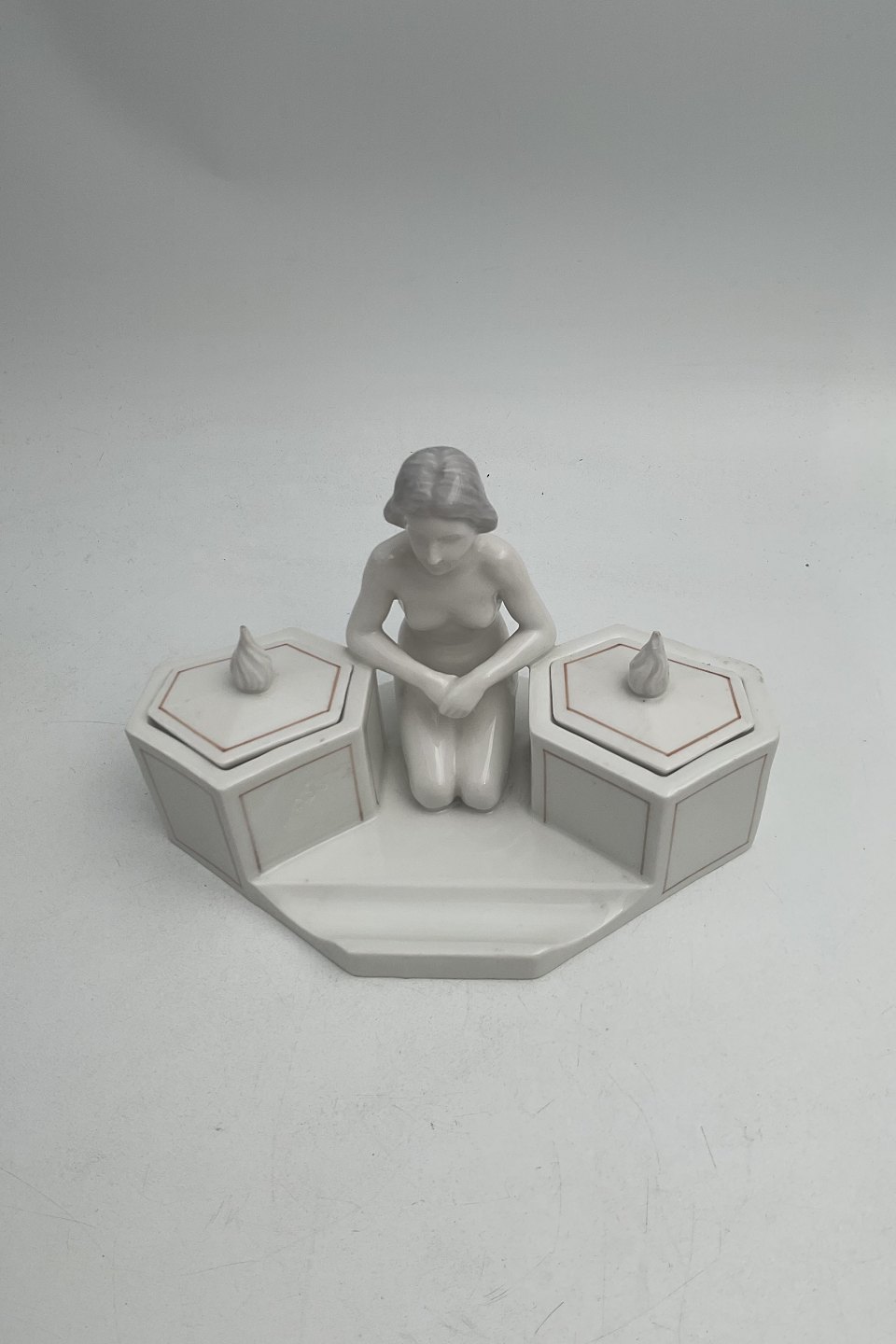 Bing and Grondahl Art Nouveau Inkwell Set with Girl No. 1556