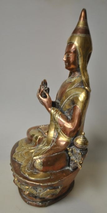 Sitting Tibetan Lama, sculpture, ca. 1950. Nepal. Probably Tsongkhapa, Made of bronze and copper. Stamped. H.: 30.5 cm.