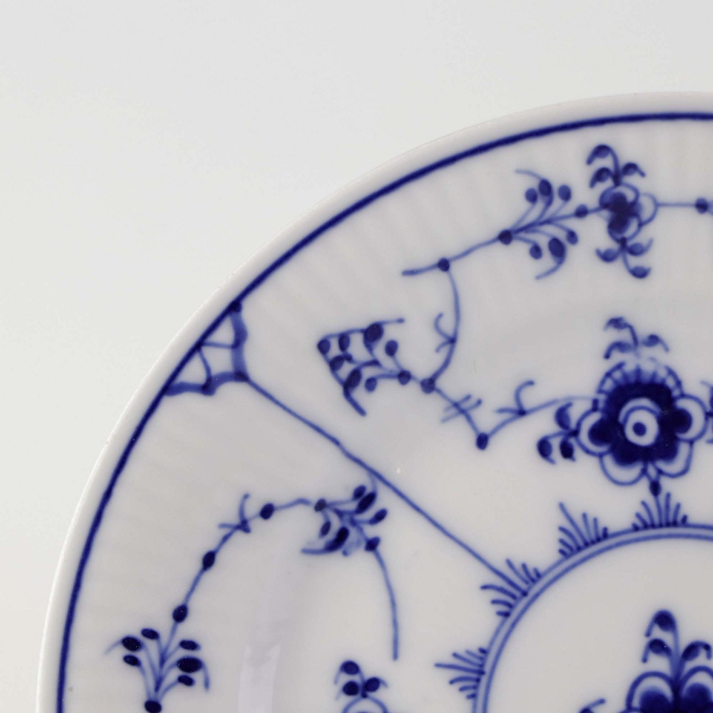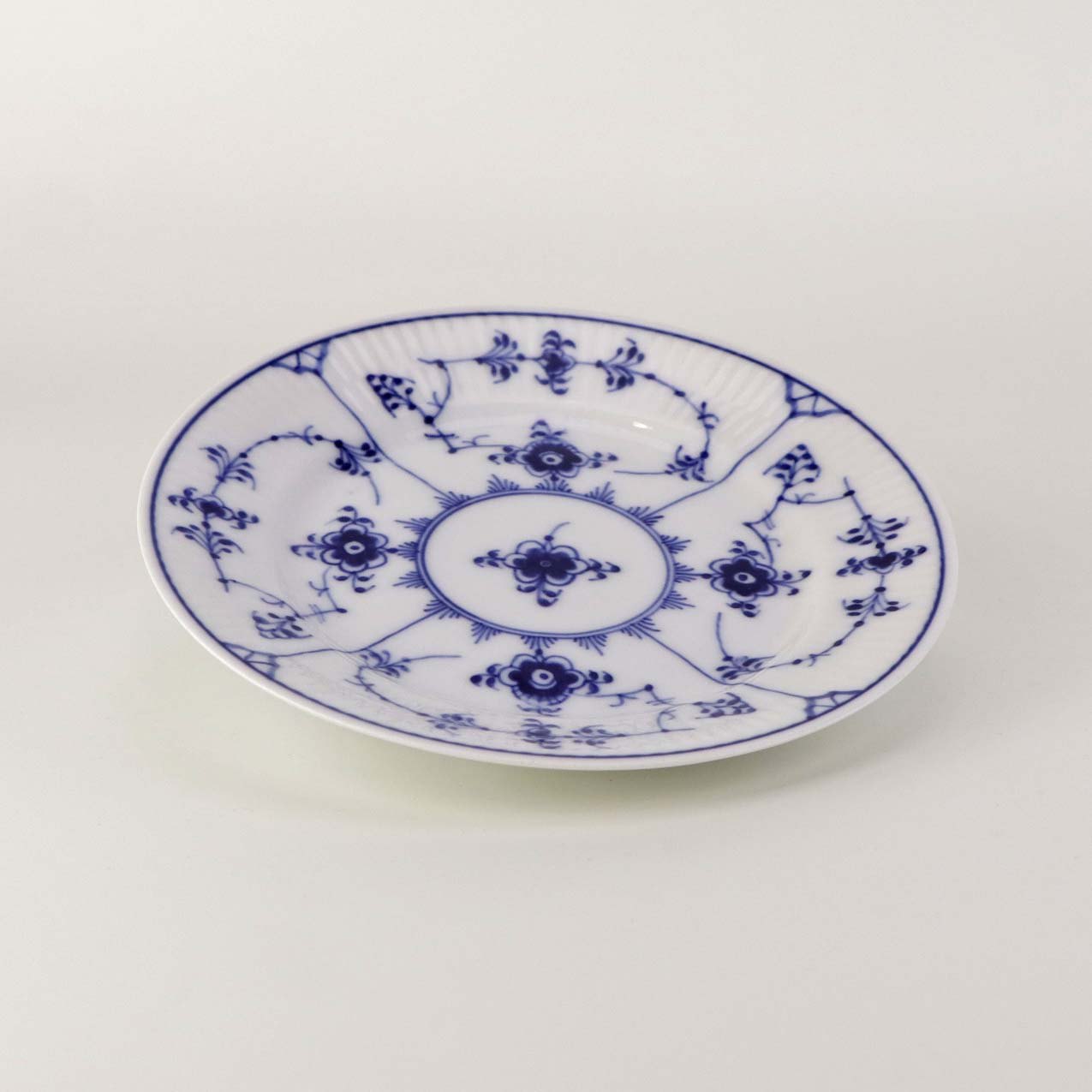 Flad kagetallerken i kongelig porcelæn fra stellet Musselmalet riflet. Nr. 1/300