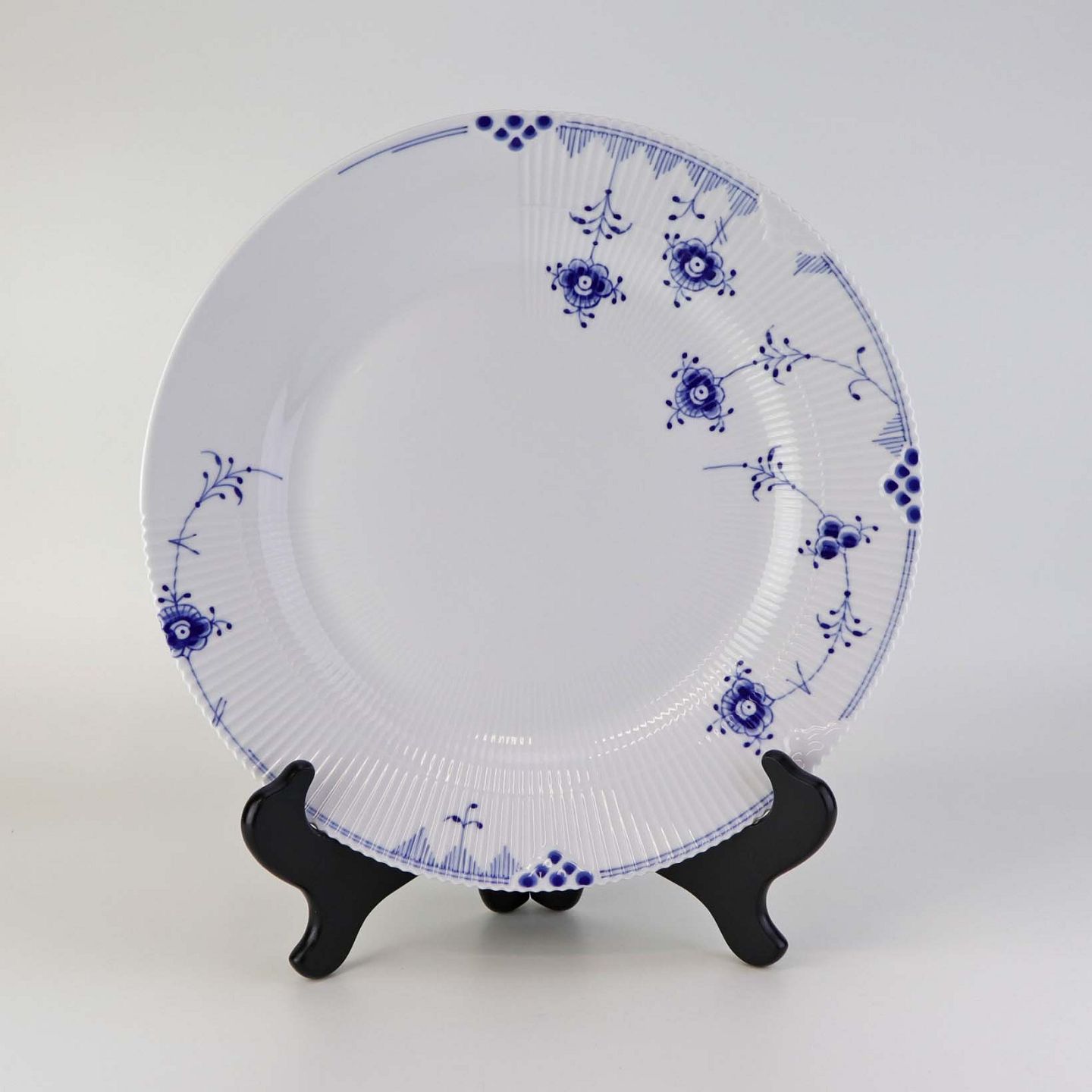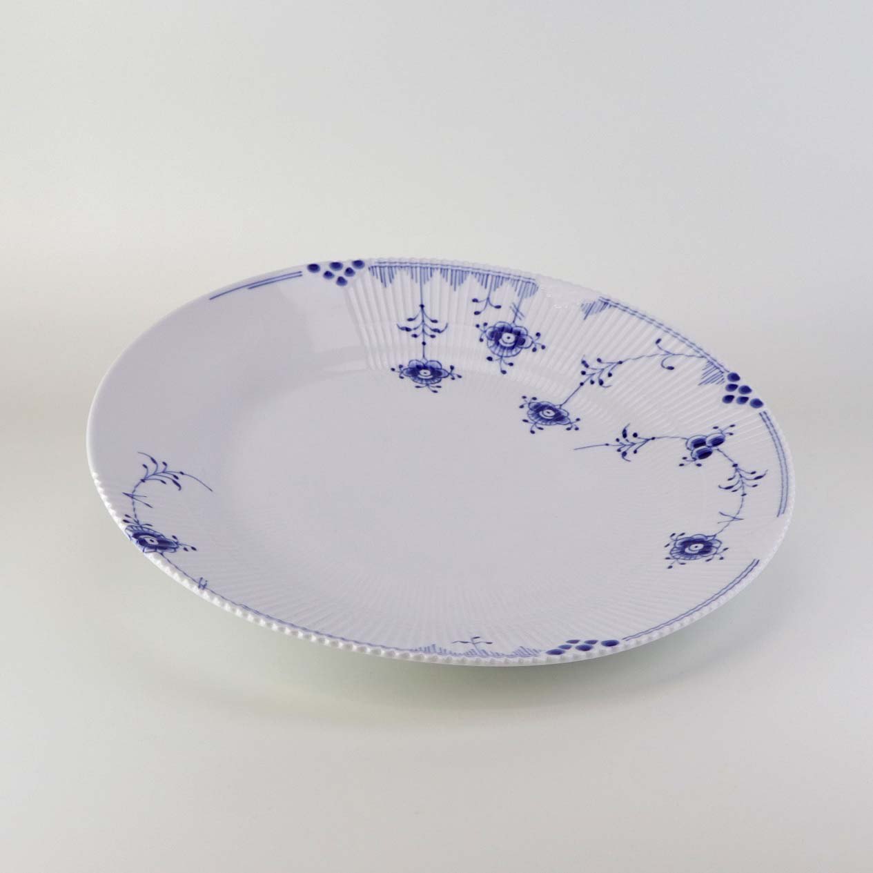 Flad middagstallerken i kongeligt porcelæn fra stellet Blå Elements. Nr. 627