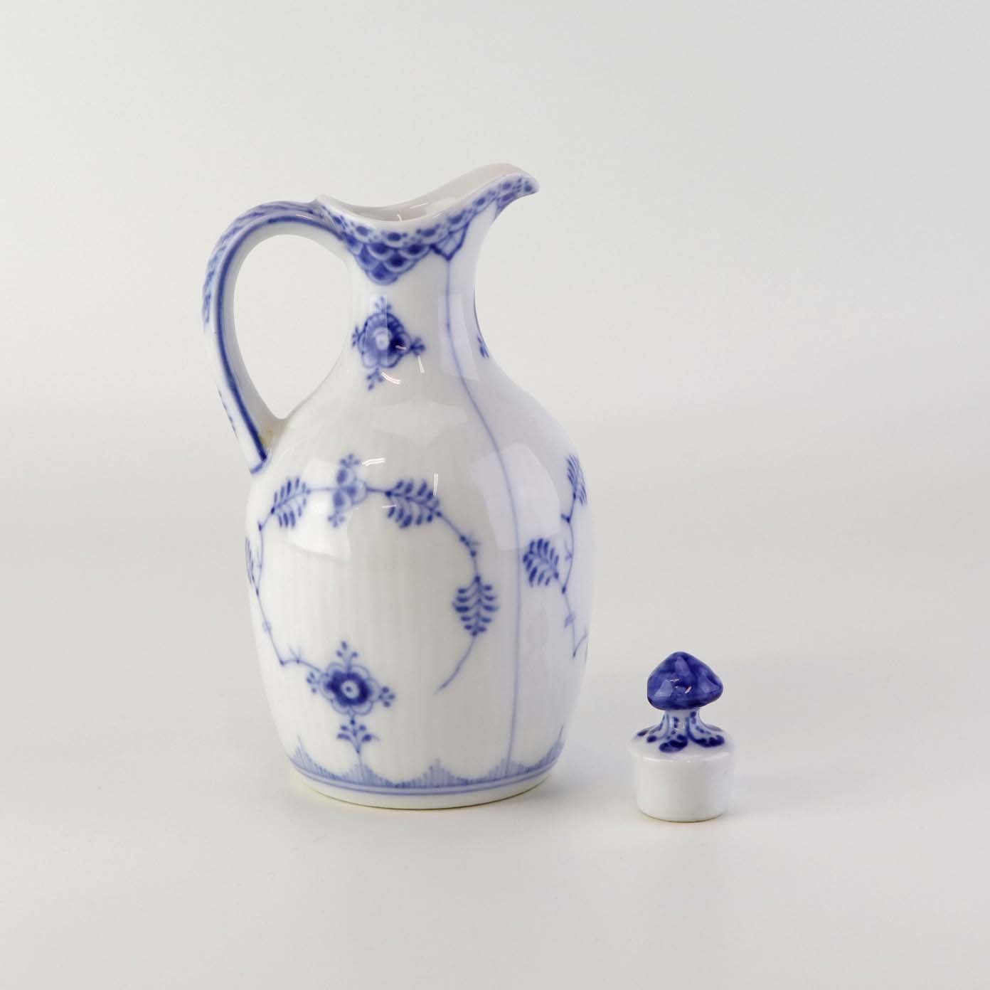 Kande med prop til olie i kongelig porcelæn fra stellet Musselmalet Halvblonde. Nr. 1/1179