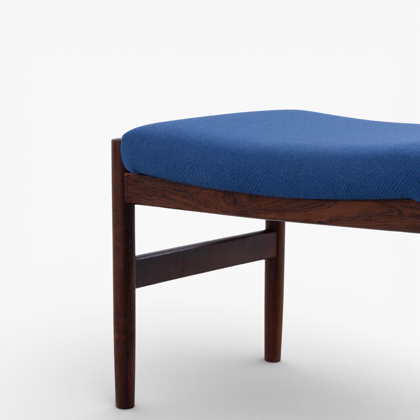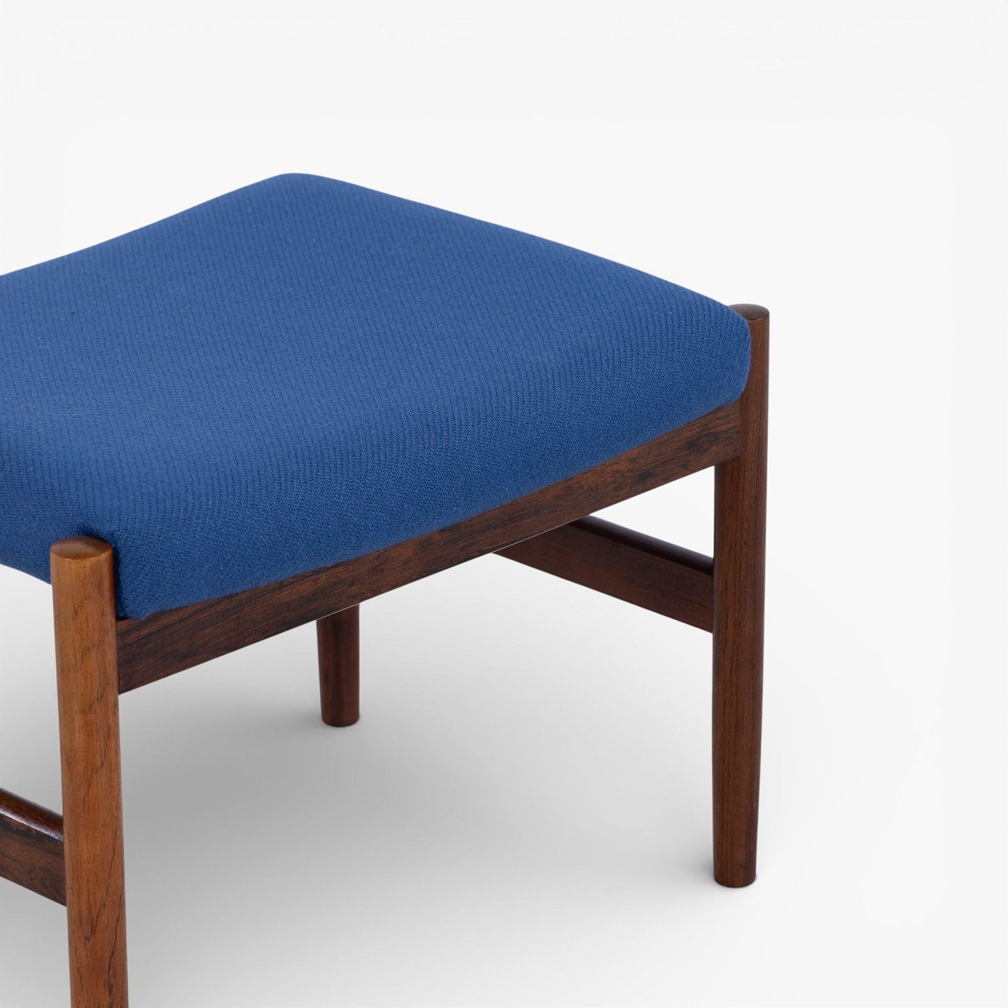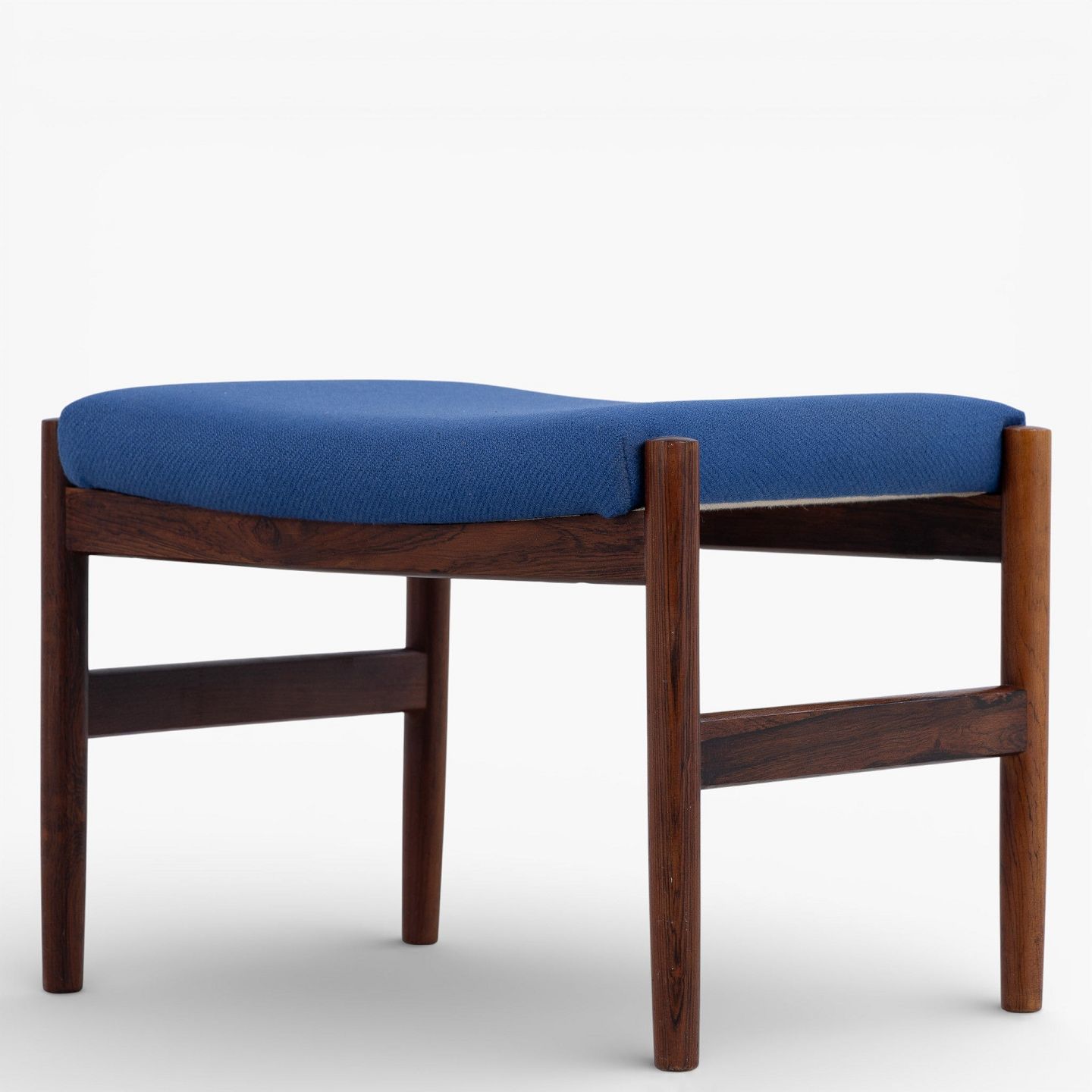 Footstool in patinated rosewood upholstered in blue wool.