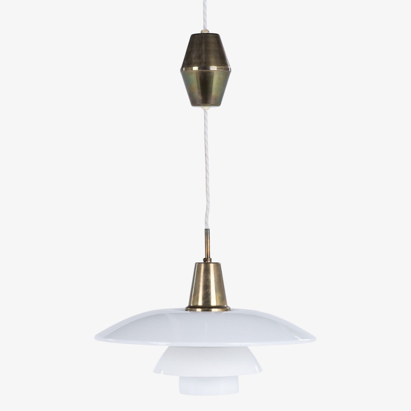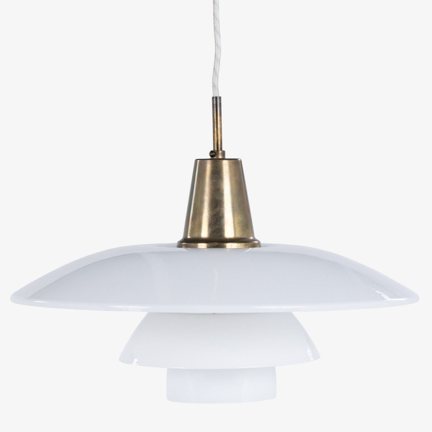 PH 4/3 - Pendant lamp with white glass shades and brass handle.