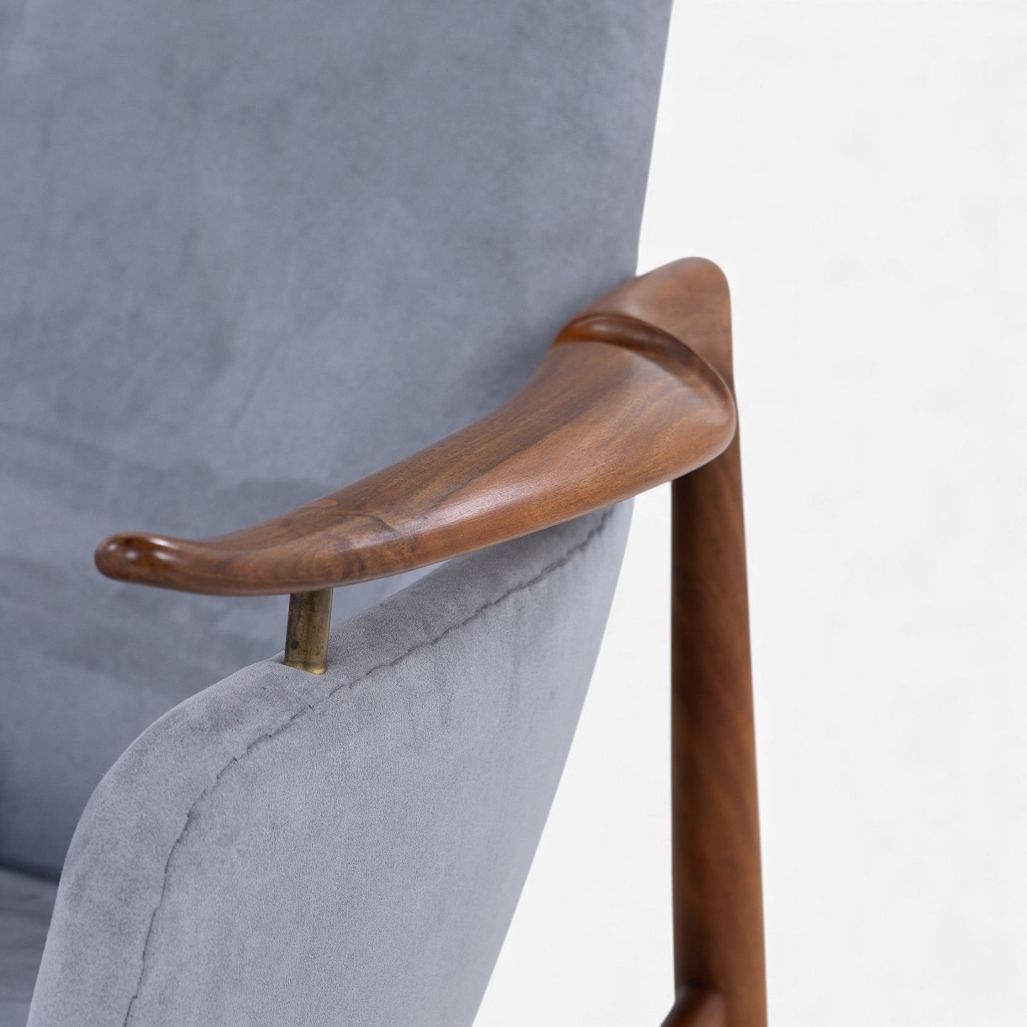 NV 53 - Armchair in grey 'Alcantara' fabric with frame in patinated walnut.