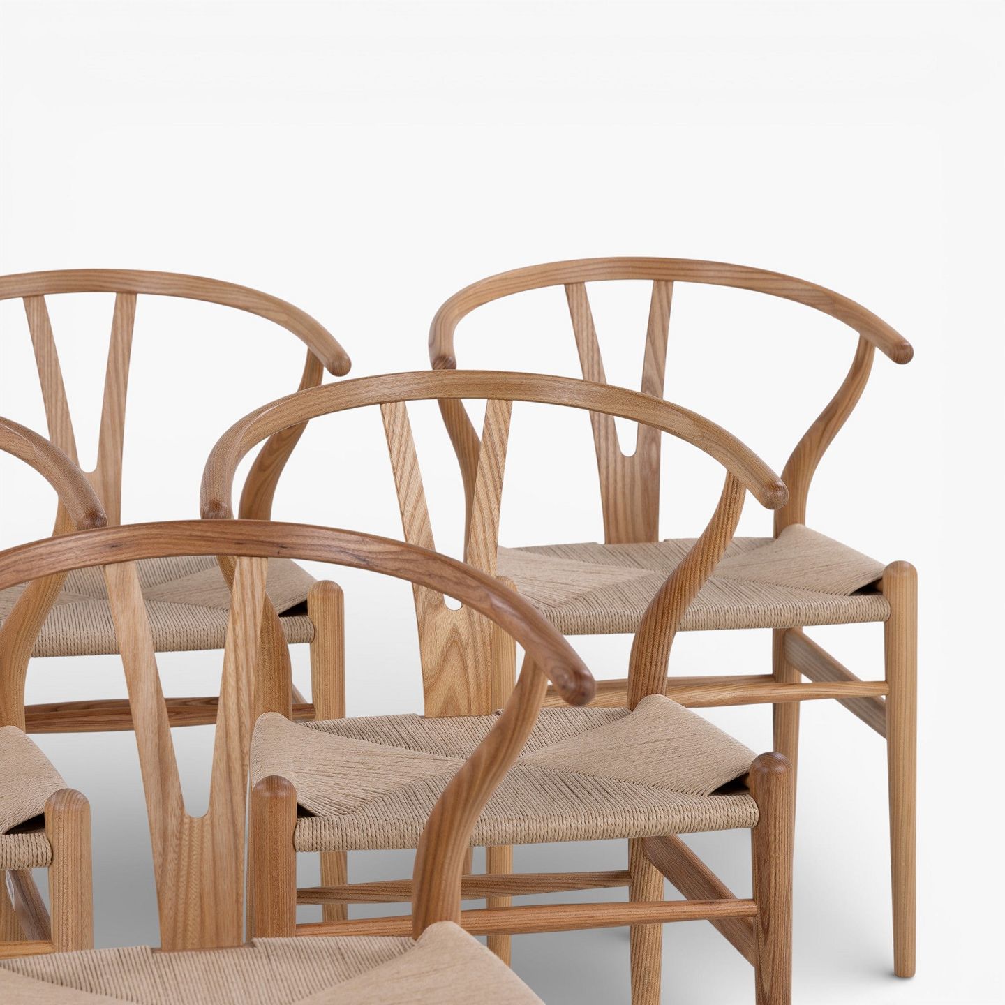 CH 24 - Set of 6 dining chairs in elm with seats in woven paper yarn. Manufacturer's mark. Limited Edition from 2017.