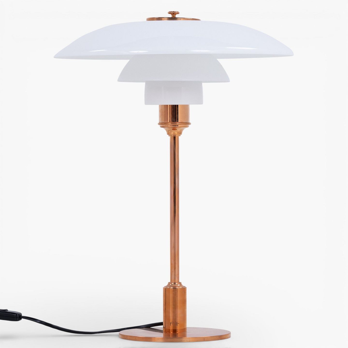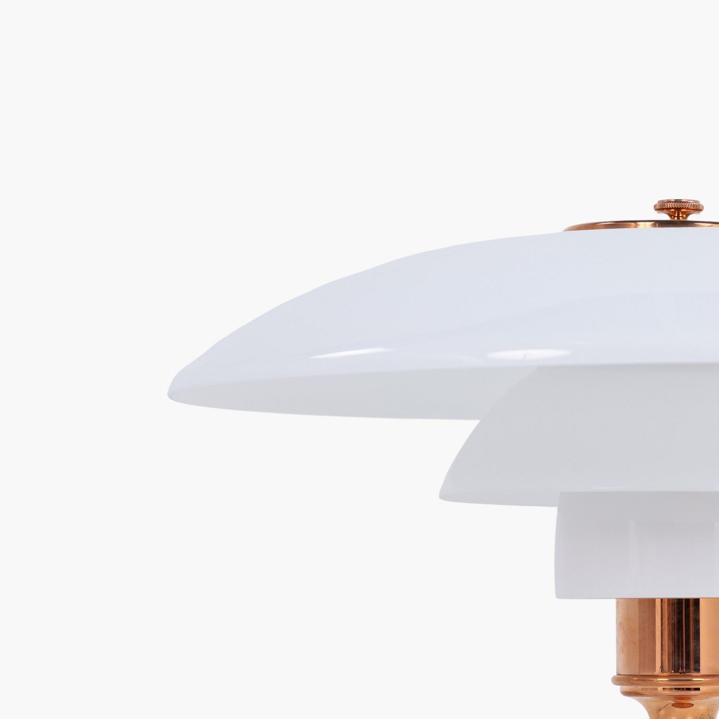 PH 3½-2½ - Table lamp with upper shade in copper/white opal glass (both shades included) and middle and lower shade in white opal glass. Anniversary edition. Original box included with certificate.